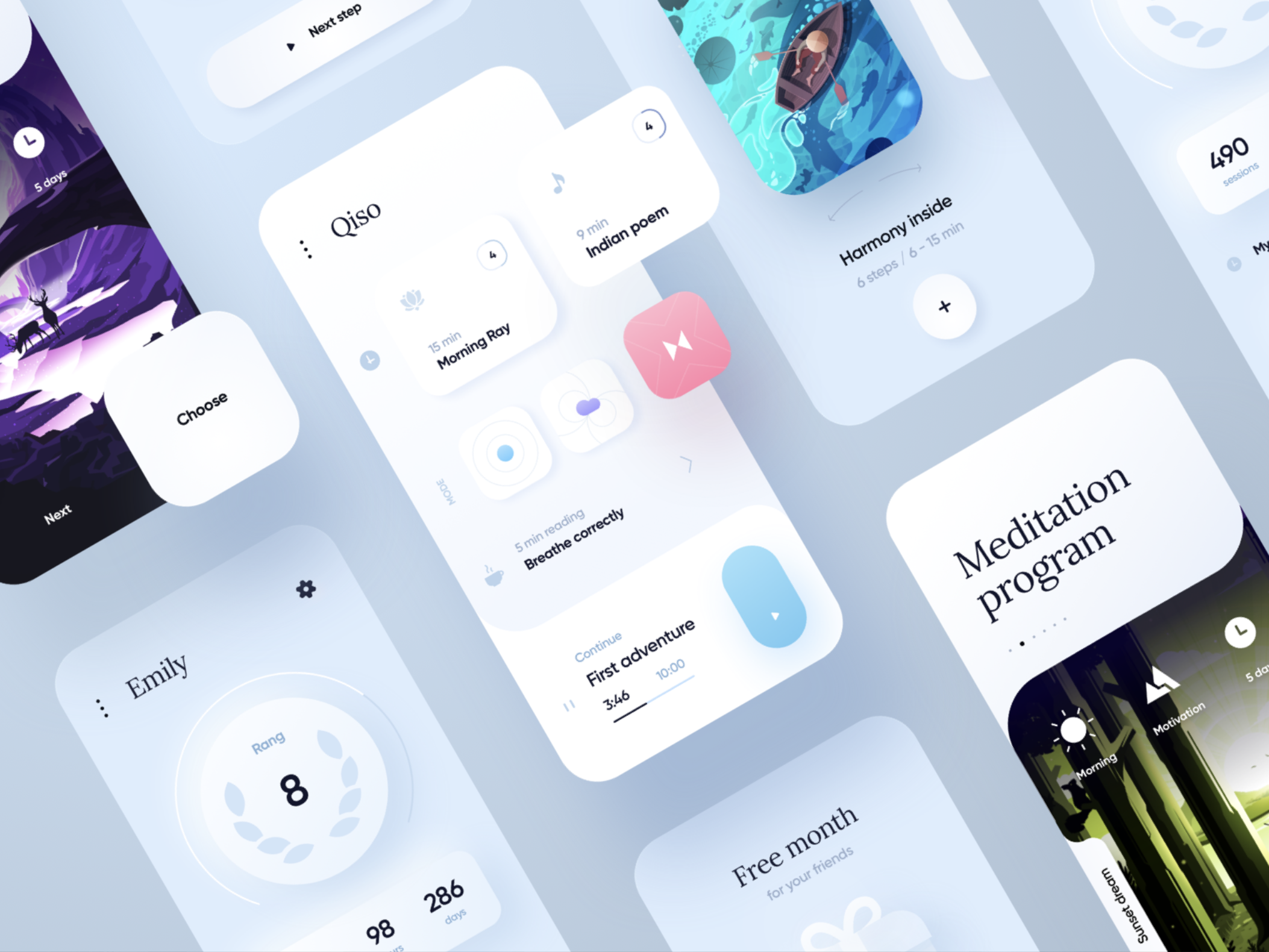 柔和的彩色阴影使UI有了更微妙的深度变化,在图标设计中经常需要渐变或阴影来塑造物体,柔阴影使设计元素更丰富立体,并且它们有助于区分内容之间的层次结构。