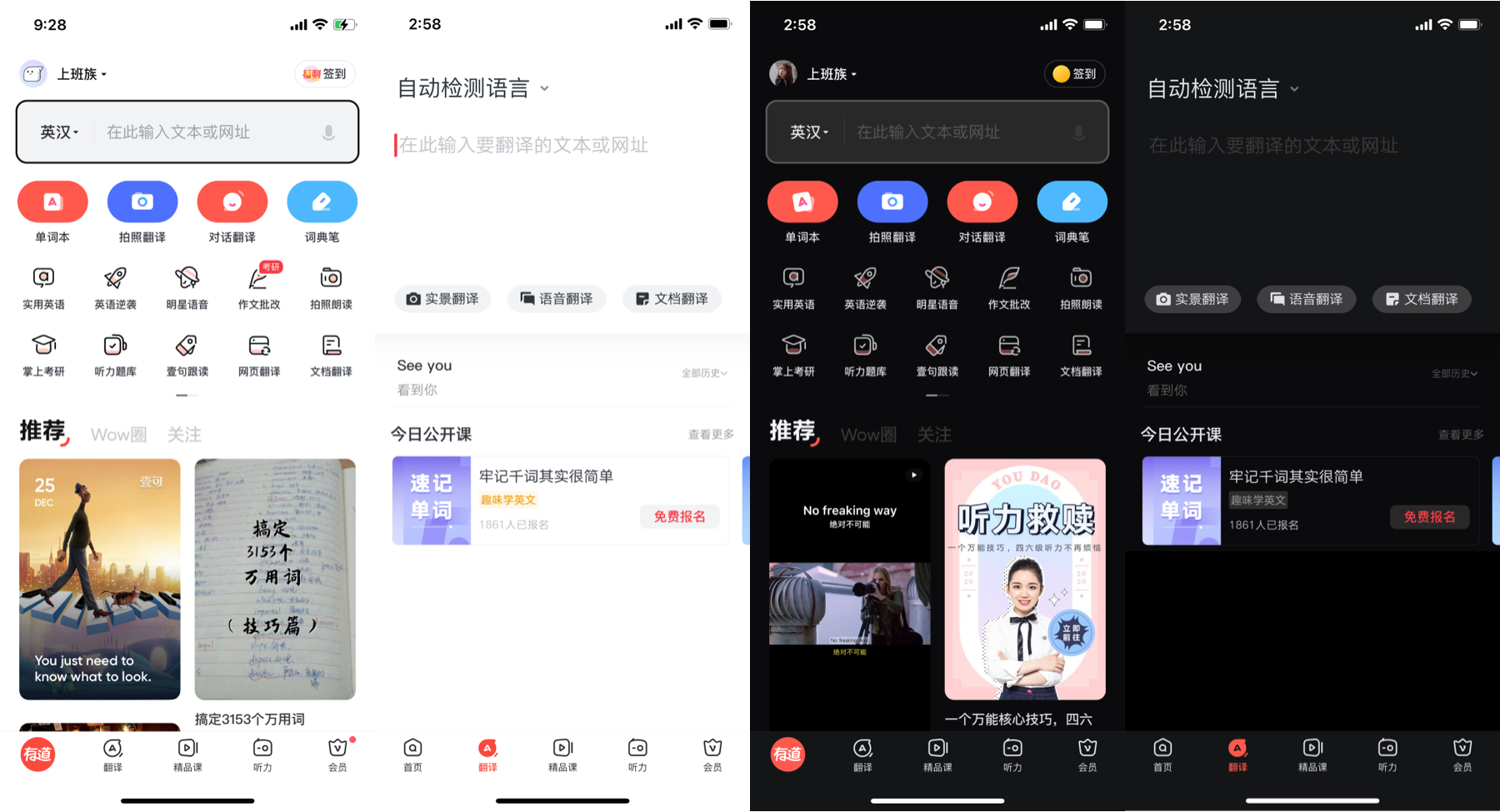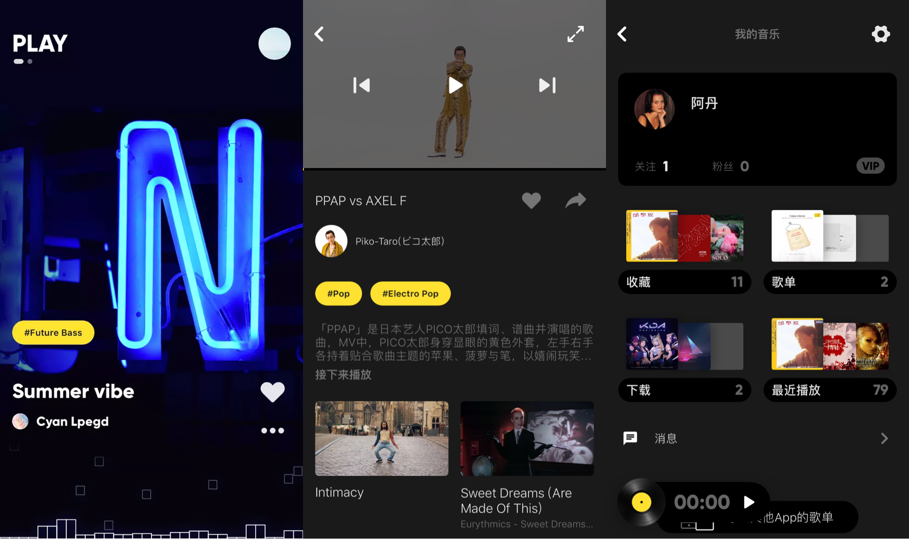 暗黑模式的灵感最早引起大家注意的应该是抖音,在这之前大部分的应用都是白色为主,抖音整体黑色界面带来的沉浸以及轻打扰体验还是很棒的,在这之后也相继出现了以黑色为主的APP设计:
