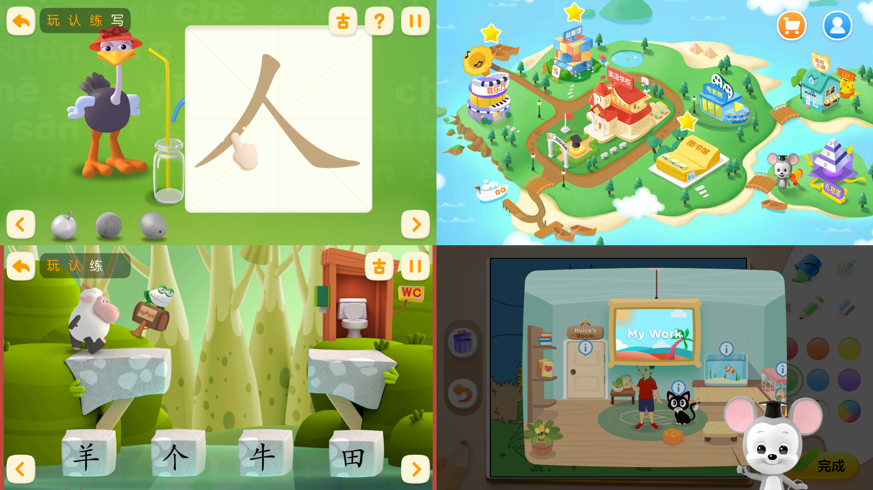 ▲洪恩识字(3D学习场景)、腾讯开心鼠英语ABCmouse