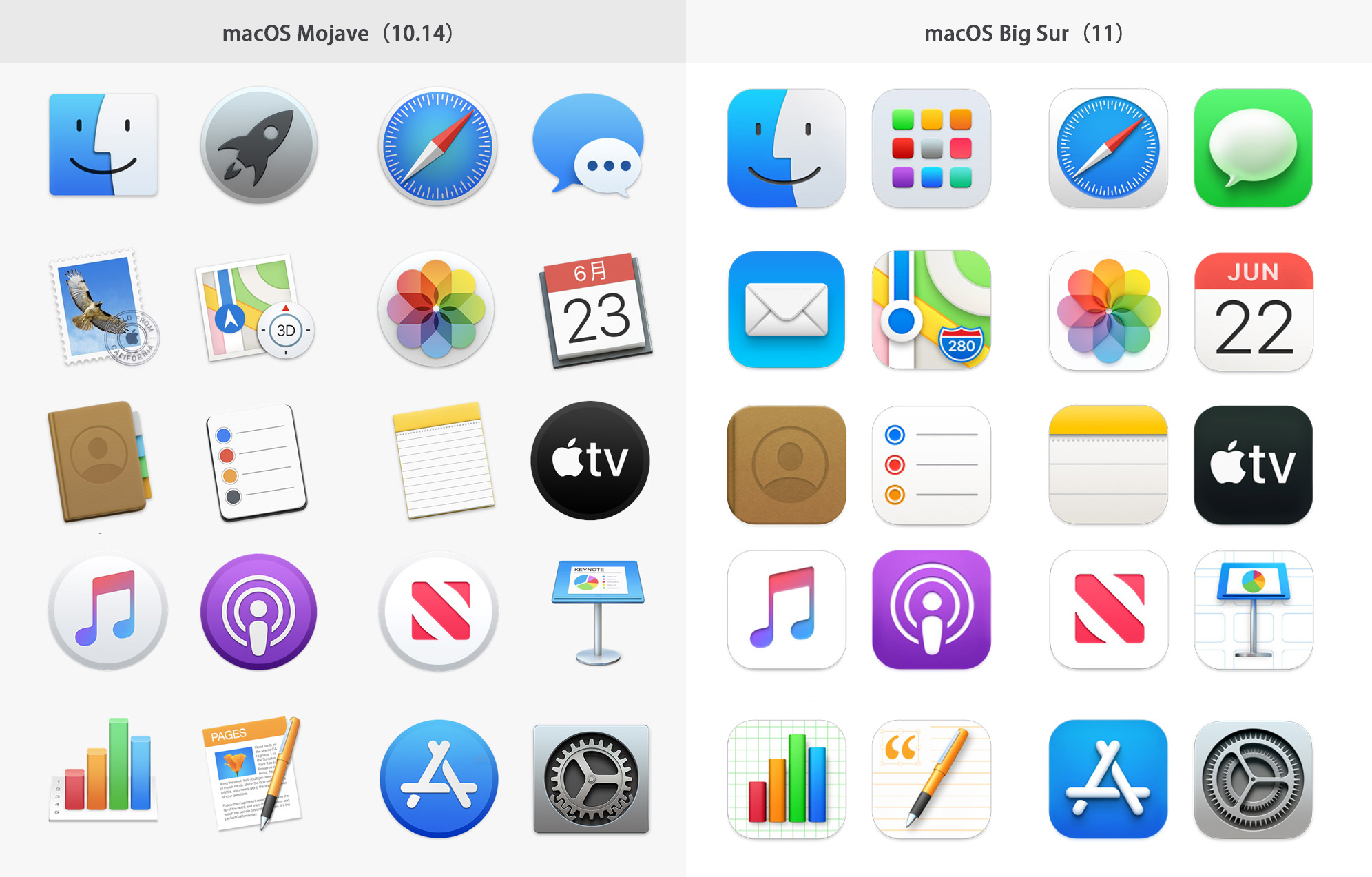 伴随着今年苹果发布的 MacOS Big Sur 操作系统的发布,新的拟物风格正式回归大众视野,整体风格应用了新拟态(Neumorphism)的设计思路,利用大量的毛玻璃质感和大量投影纵深感,能很好的突出前景信息,中和了扁平化图文带来的生硬不立体感。而Big Sur最新的图标也加入了 3D 质感设计,设计语言更为时尚简洁。苹果设计师 Alan Dye 在发布会上也提到了设计风格转变的原因,主要是希望「降低视觉的复杂度,让用户能够将注意力集中在内容上」。
