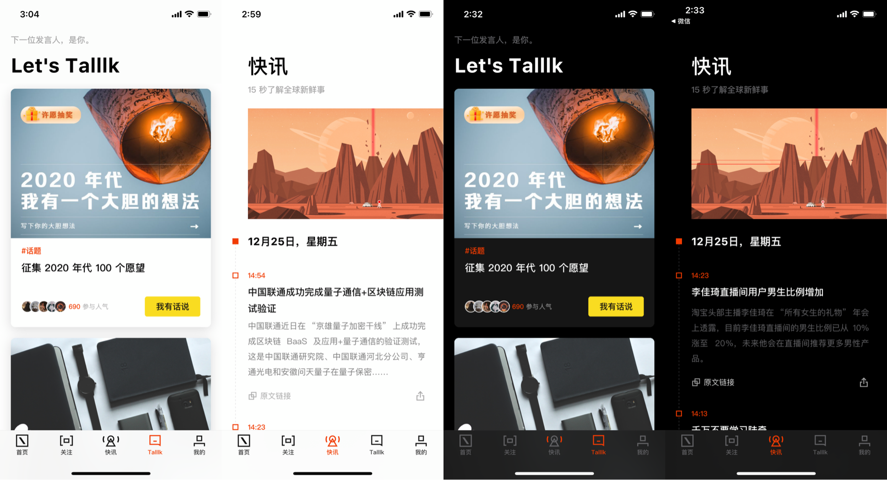 暗黑模式是白色界面的相反版本,适用于午夜时分。之前用了很长时间微信的暗黑模式,突然切换成白色界面后,就像吸血鬼见到太阳光般刺眼,果然暗黑模式用久了还是比较舒服的。