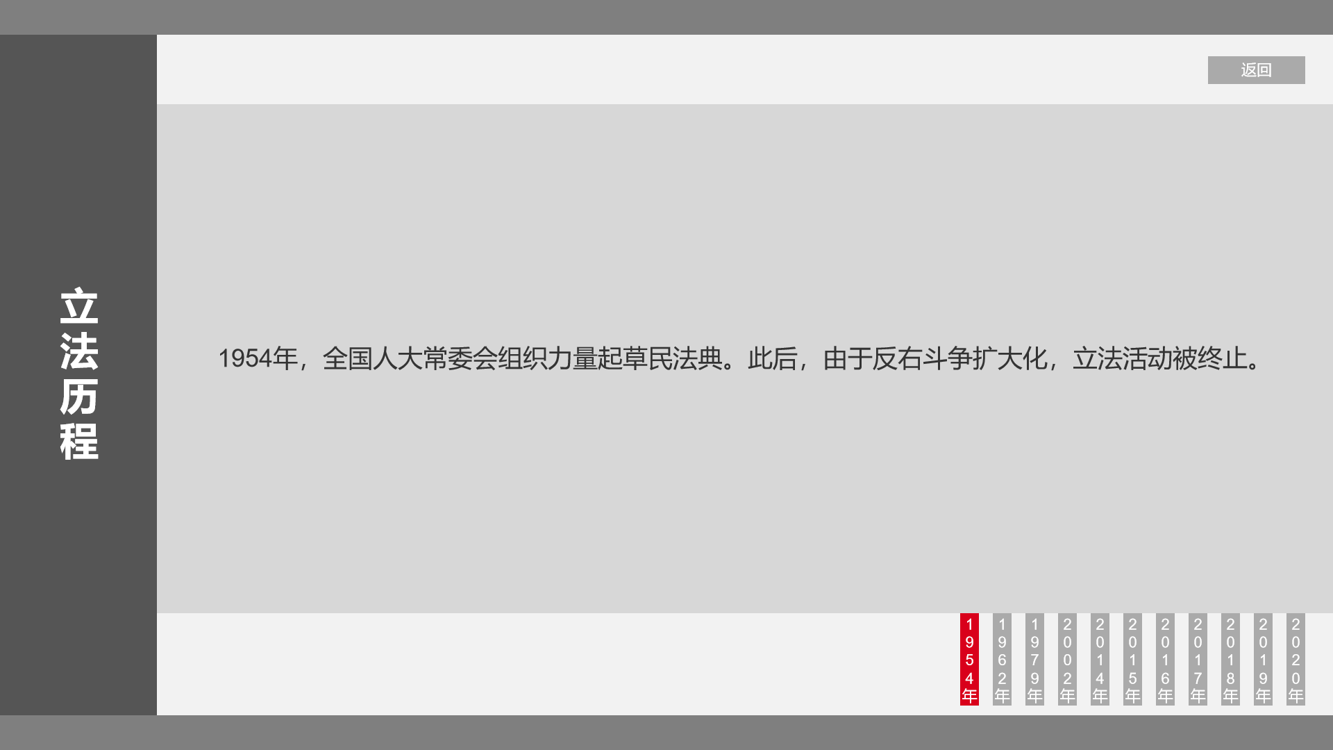 分为11个历程,点击对应历程按钮查看对应内容,点击返回按钮,返回主页。