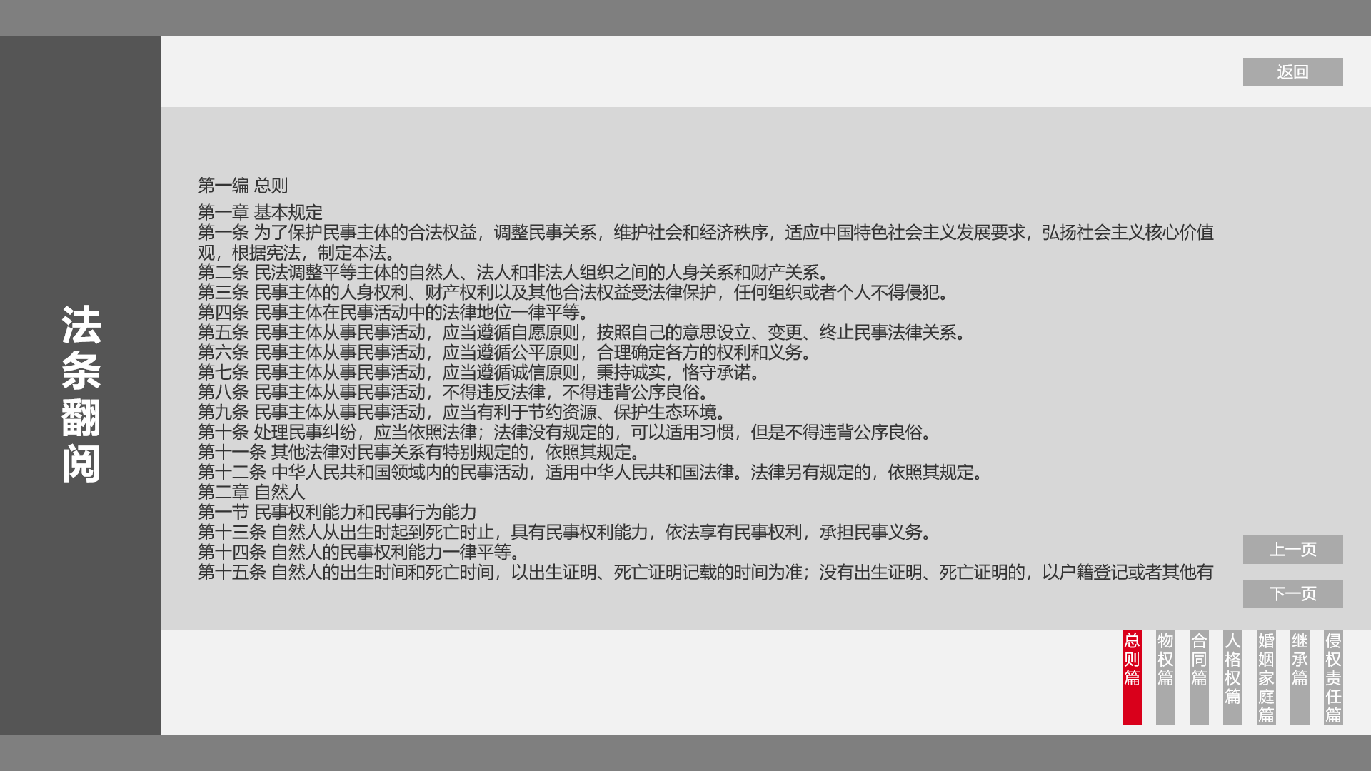 法条翻阅是查看民法典的法条。