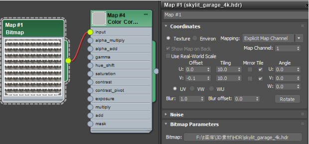我给这个hdr贴图增加了一个Color Correct,主要调整了下光源色和对比度
