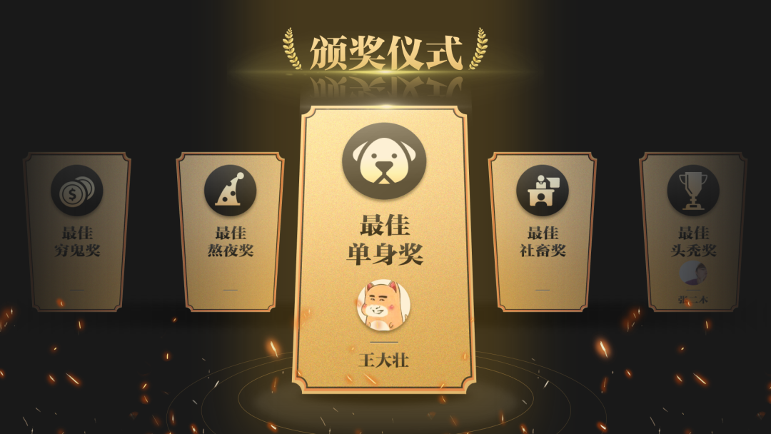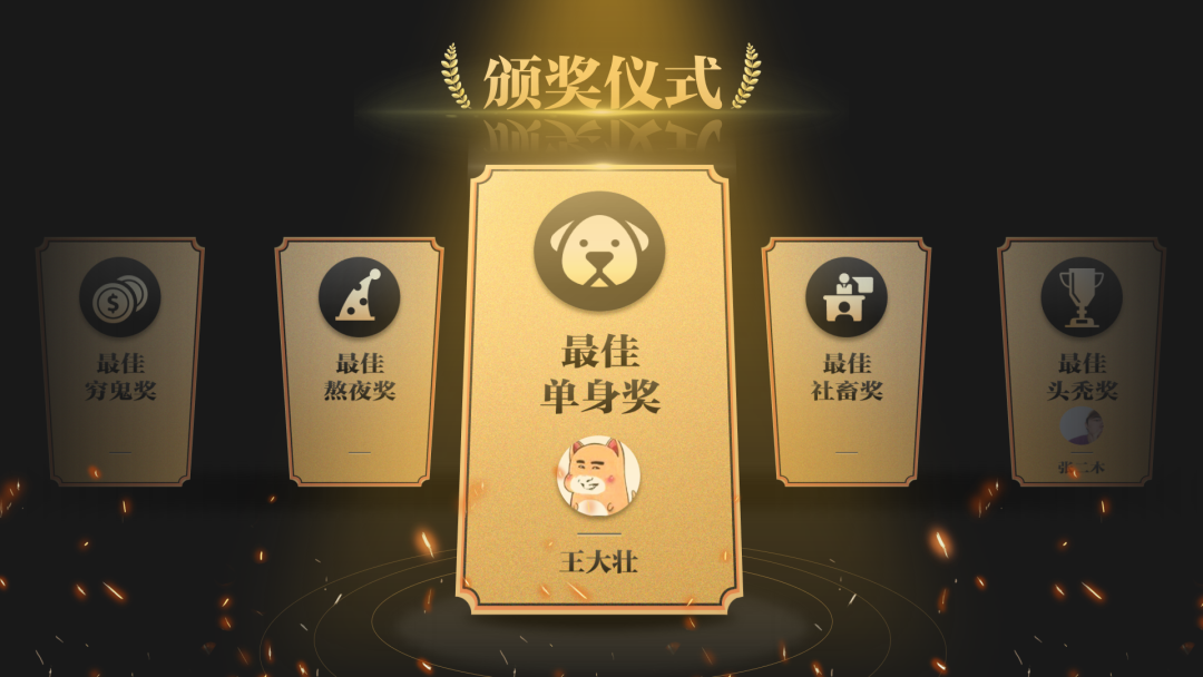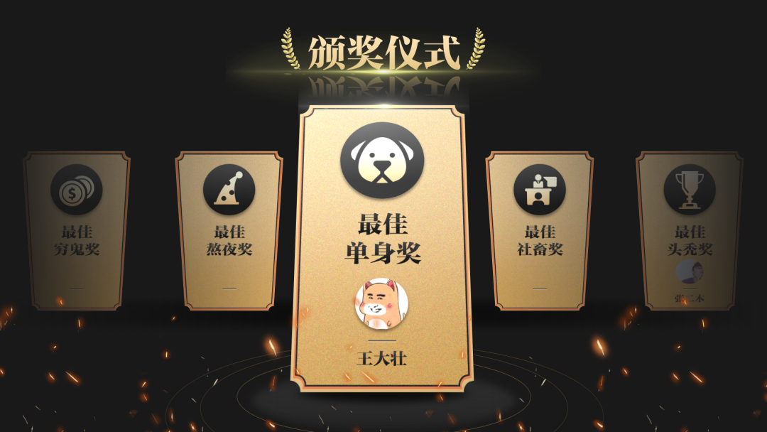 某一天,老板拿着一页制作非常精美,由超级无敌靓仔的设计师张二木,设计的颁奖PPT页面,跟你说,我觉得这个锁仔做的页面不行,没有那种大舞台上颁奖的感觉,没有duangduangduang的特效。那这个时候,你该怎么合理的用PPT制作一个聚焦灯呢?