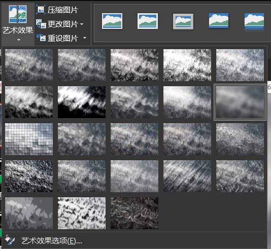 艺术效果共有23个效果选项。合理的在不同主题上巧妙使用这些效果,将会让你的PPT更加有设计感。