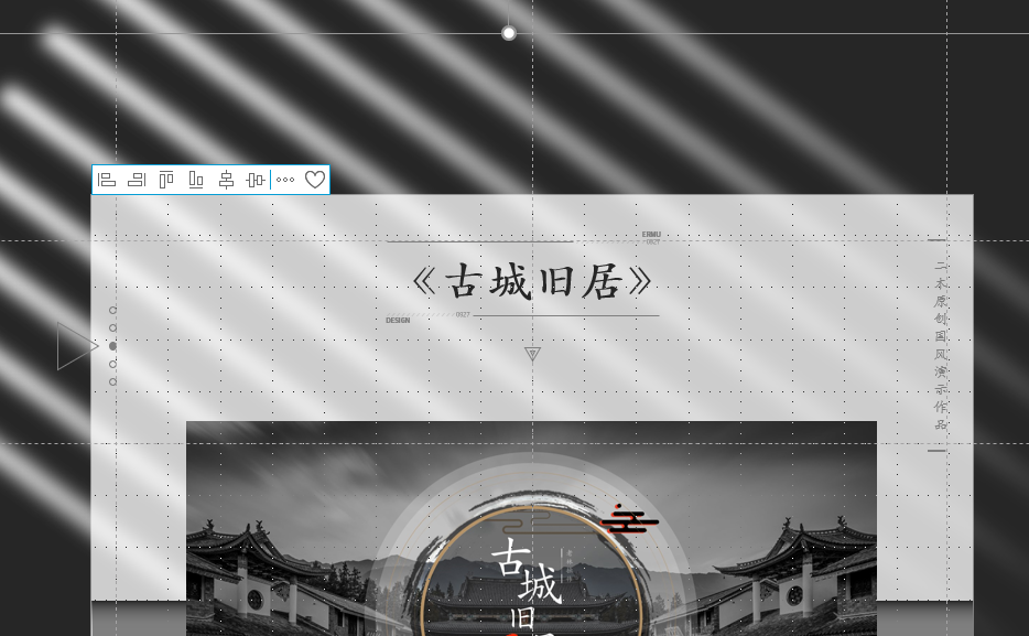 不是说这样的方式不好,当前来说,运用遮瑕蒙版,把背景图的山遮住,我们的页面效果会更加有古风的味道,不信你看一下下图,但是保留了底下的渔夫图,是不是更加有味道呢?,操作也很简单,把渐变光圈,提到对应的位置就行了。