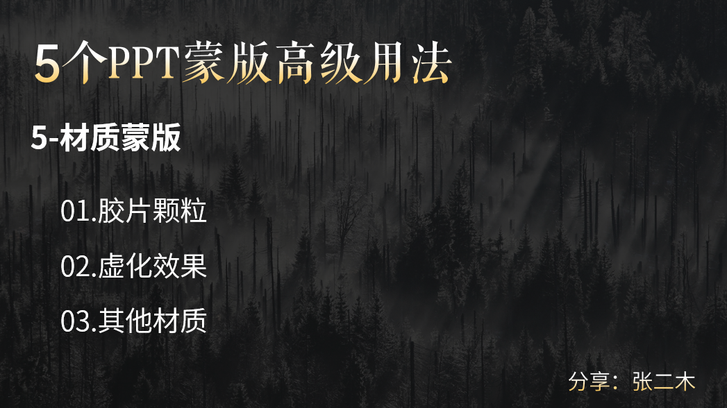 以上,就是我今天要分享的5种PPT蒙版类型,稍微回顾一下,他们分别是渐变蒙版,造光蒙版,遮瑕蒙版,纯色蒙版,材质蒙版。为了方便大家记忆,我取个记忆口诀,叫“建造这蠢材”。