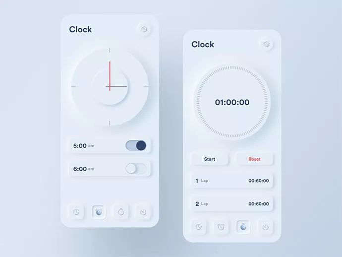 新拟态的关键就在于元素与背景之间的关系处理得非常柔和,富有层次感。