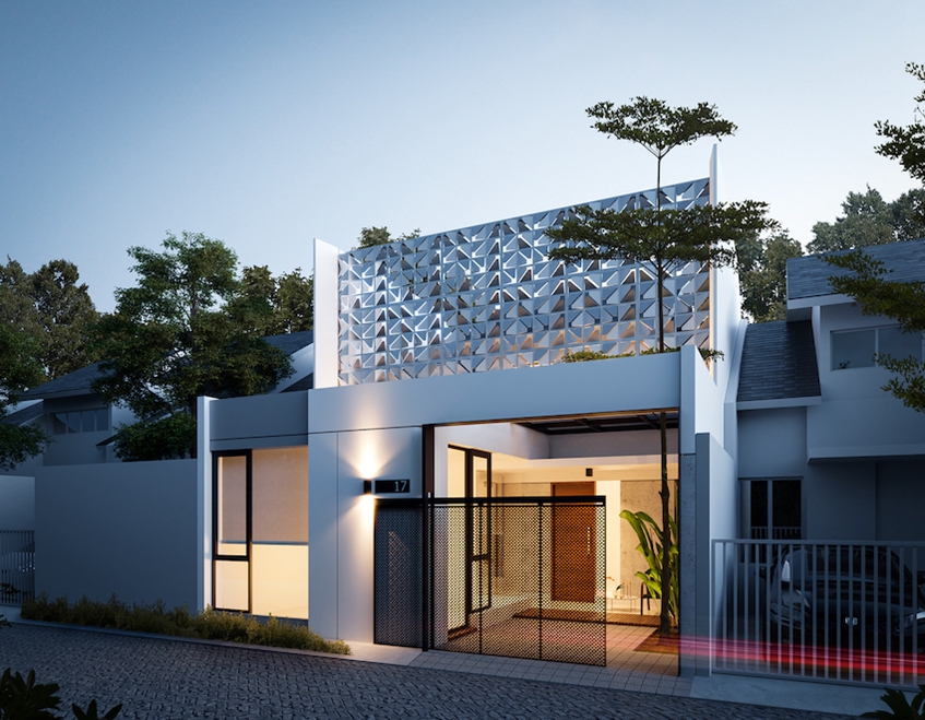 当阳光洒下,有如听见粼粼流水,静止的建筑也好似舞动著,这是印尼空间工作室所经手的翻新案例,黑白简约外观利用 ACP材质