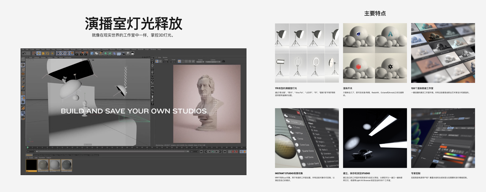 适用于各类渲染器,并且拥有丰富的默认预设。