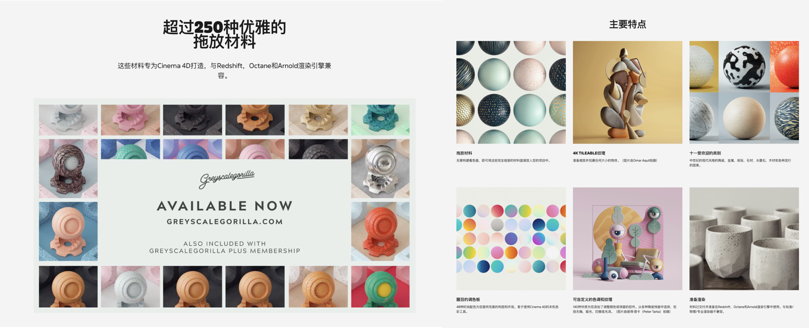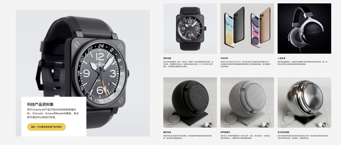 (图片截自gsg官网与c4d默认材质库,侵删)