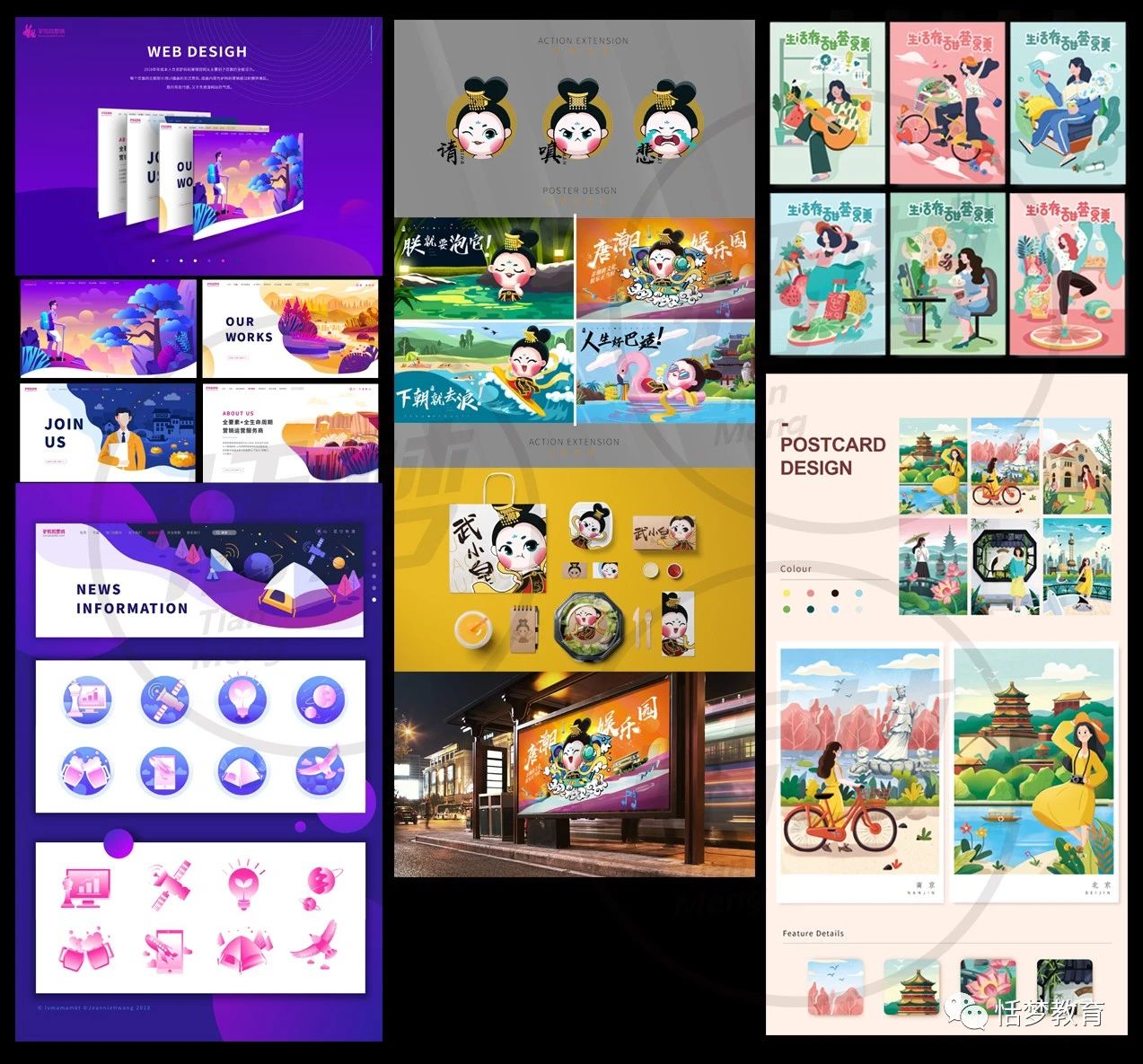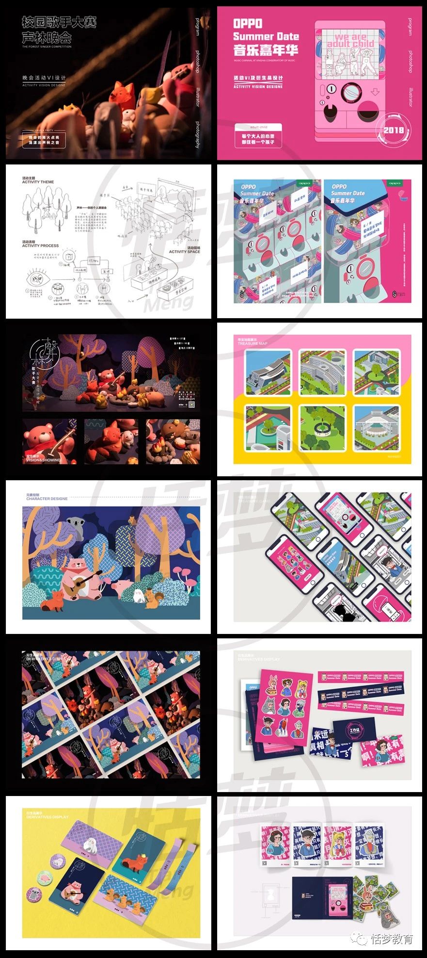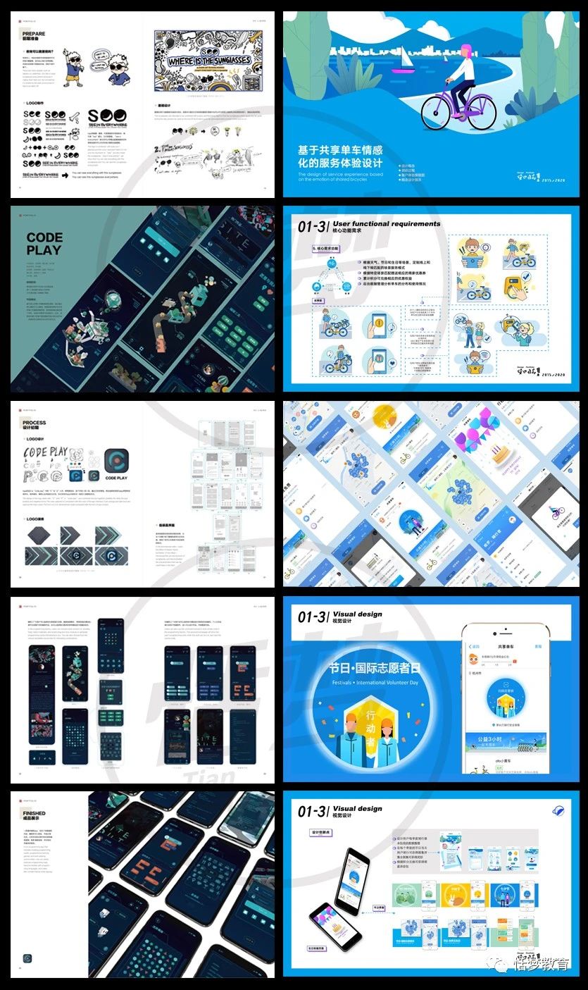 作品集课程引导同学们完成封面、封底、简历、个人介绍以及若干个完整的项目;