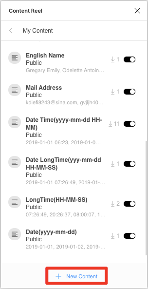 提供了一些其他用户添加的公共内容项,可以直接点击开关添加