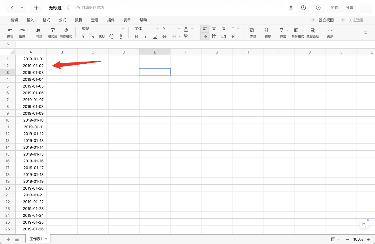 4.2 填充列中其它行内容,会依次自动填入后续日期