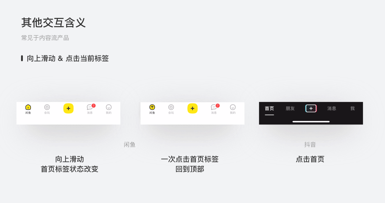 点击对应页面标签=直接刷新(抖音首页的下拉刷新只适用于第一个视频,之后的下拉手势是看上一个视频,点击标签栏的首页,可以直接刷新,解决了手势冲突的问题)