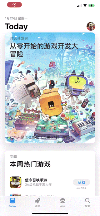 在iOS的APP Store和音乐APP中,苹果设计师采用了卡片式设计,大大增大了元素的可点击区域,操作体验更佳。