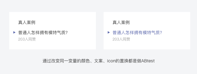 在产品迭代过程中,我们需要验证用户对不同视觉效果的使用感受和行为结果,使用ABtest来优化升级交互体验。通常用于测试颜色、图文大小、icon对用户的影响。