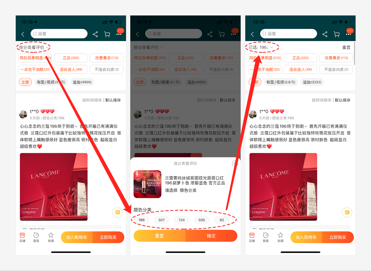 优点:节省用户查看评价的时间,用户可以直接查看特定属性商品对应的评价,减少用户时间成本。