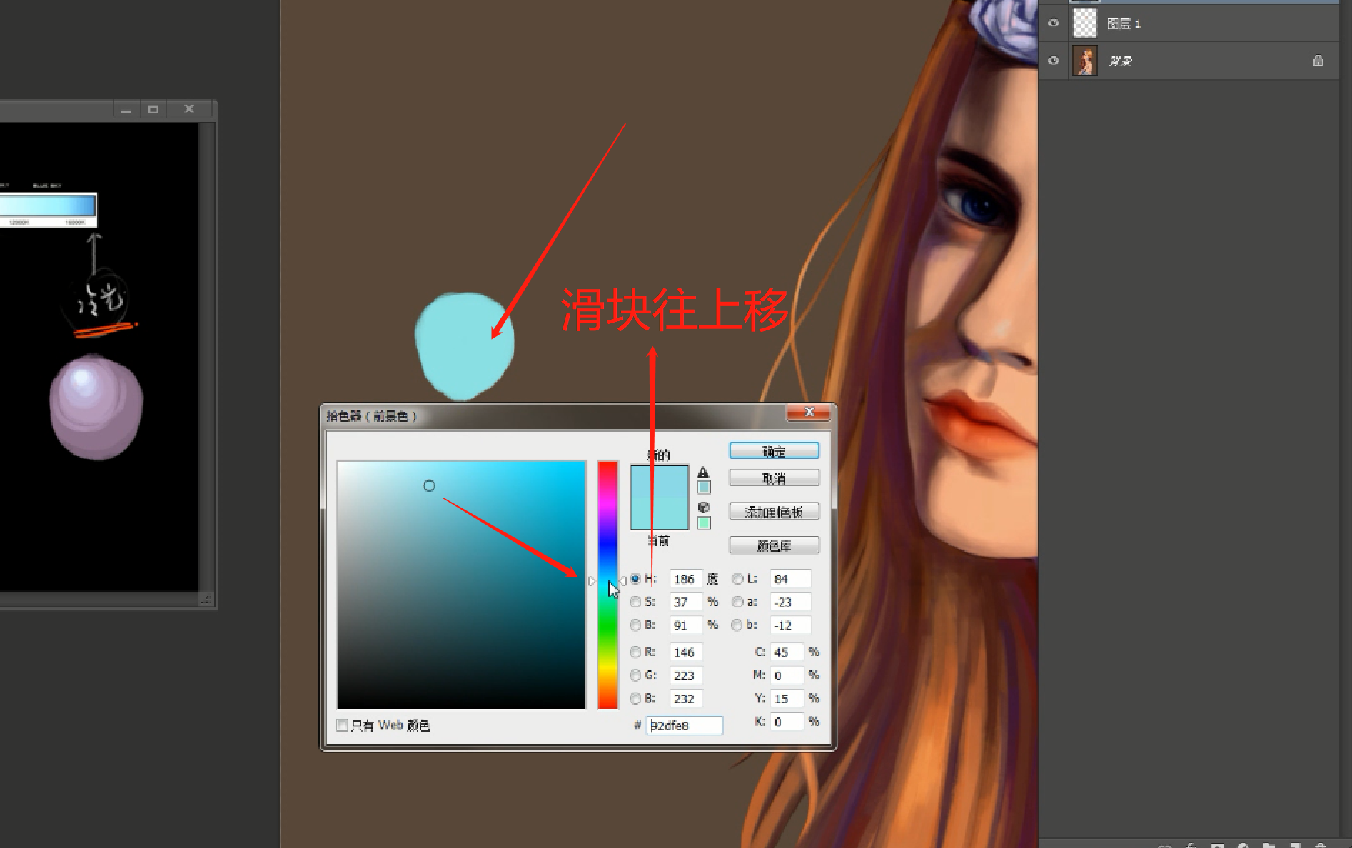 吸颜色,滑块下移,提亮