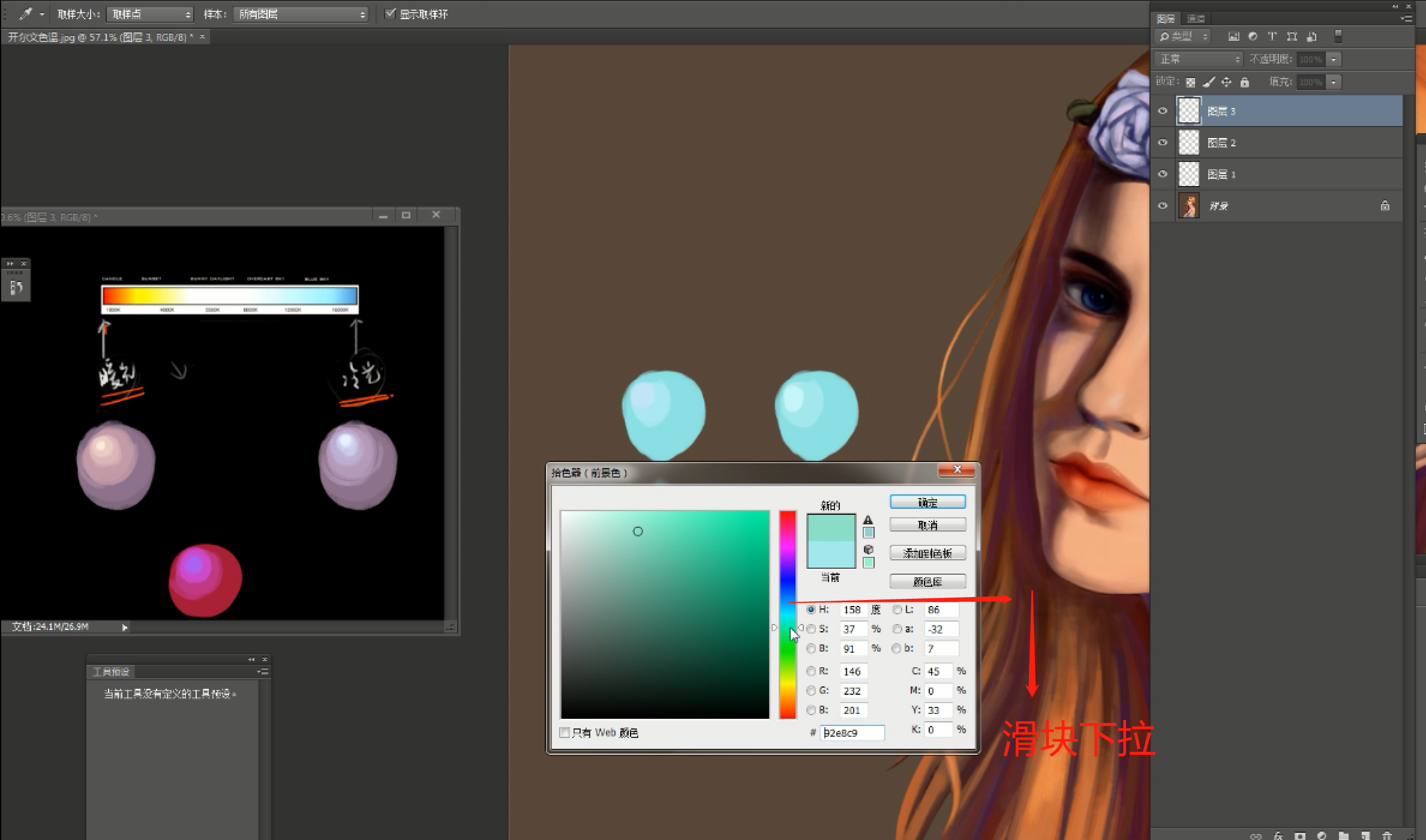 暗部往暖色偏,滑块下移动