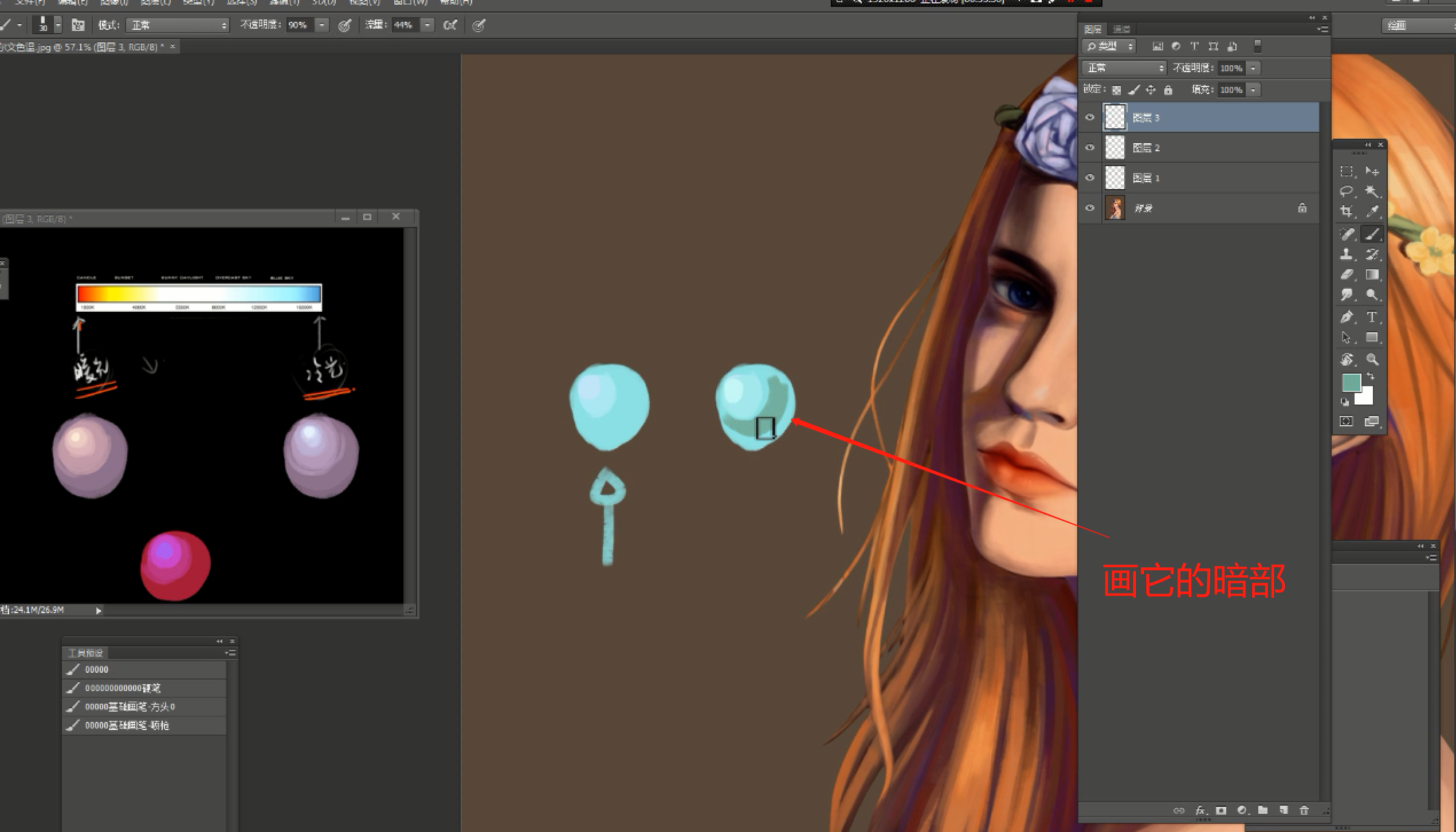 颜色就没有微妙的变化了,那么我们画它的暗部