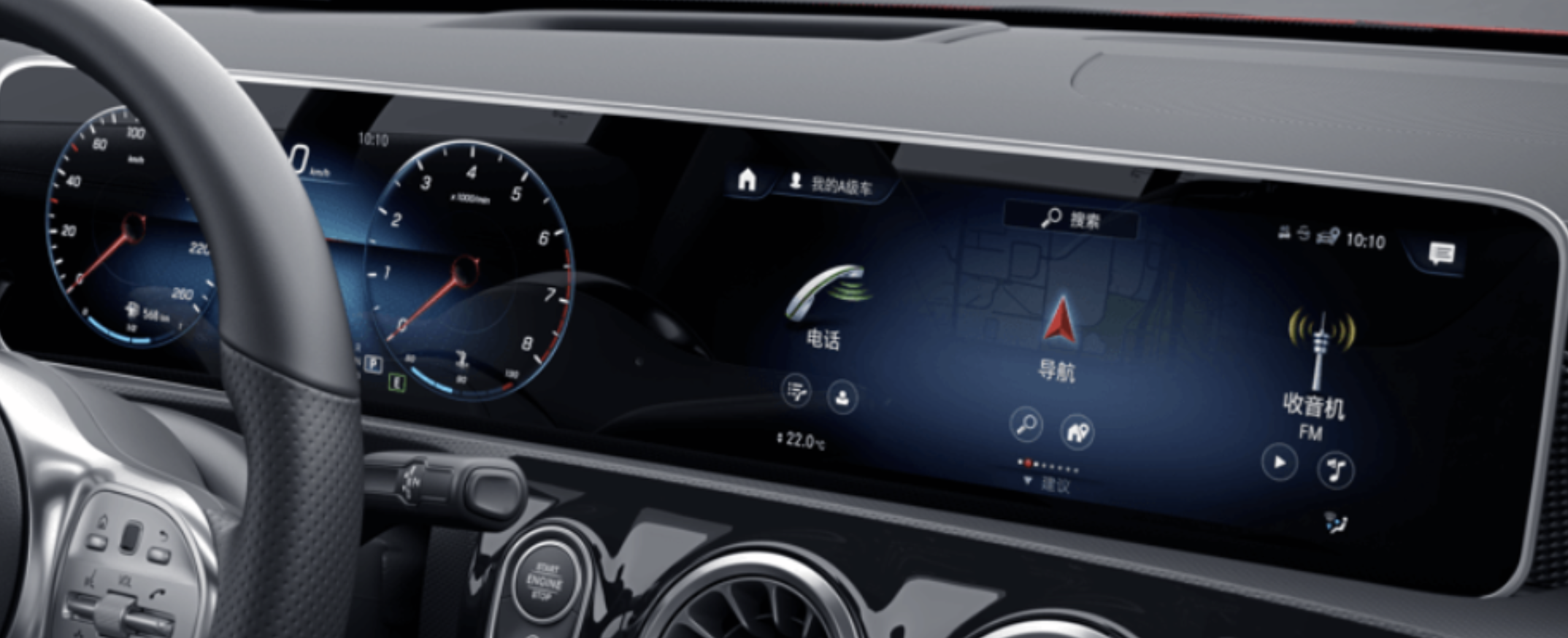 有些座舱显示屏应用超宽一体屏,比如:奔驰,一块屏幕分割为两个规范屏幕,一半用于仪表,一半用于中控。还有比如特斯拉,就一块大屏幕,搭载座舱所有的功能,包括仪表的功能。
