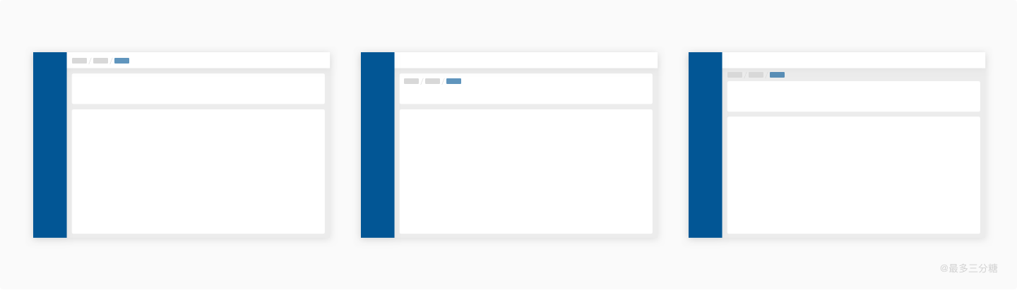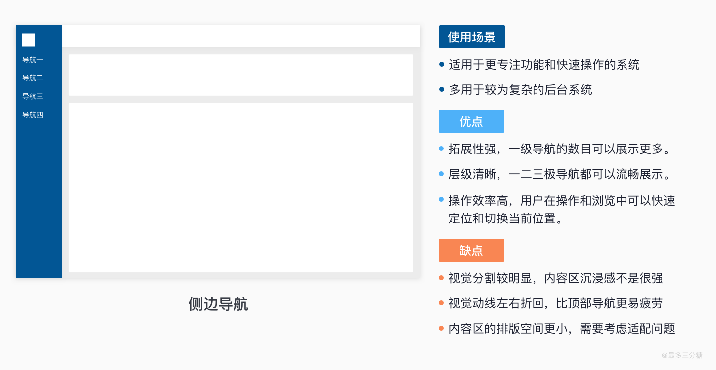 总结:从顶部导航到侧边导航,再到混合导航,虽然复杂程度越来越高,沉浸体验越来越差,但产品可用性大于体验性是B端产品的特点,所以我们根据产品实际去抉择。