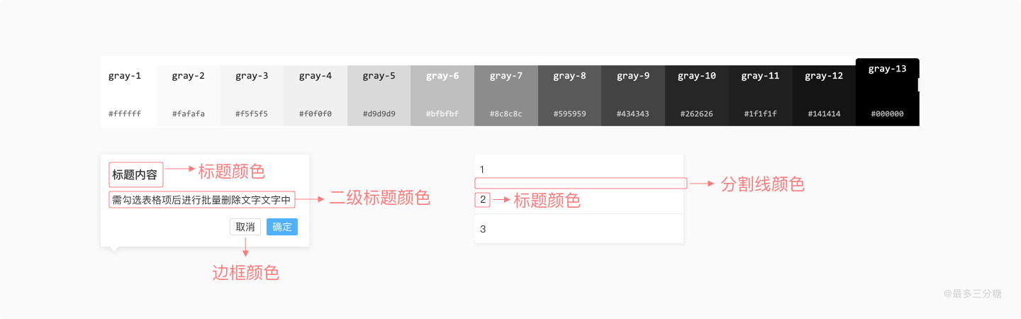 用文艺一点的说法来描述中性色可以称它为“50度灰”,最深的颜色一般用于标题,正文文字。较浅的颜色用于边框,分割线,背景色。