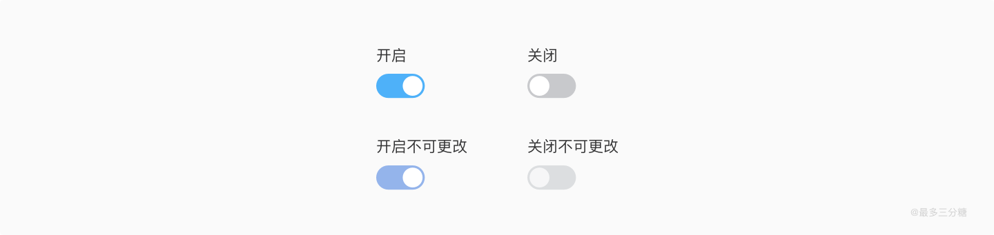 滑动开关其实也是单选组件。开关适合用于具有对立意义的选项,开关的作用是即可生效,准确易懂。