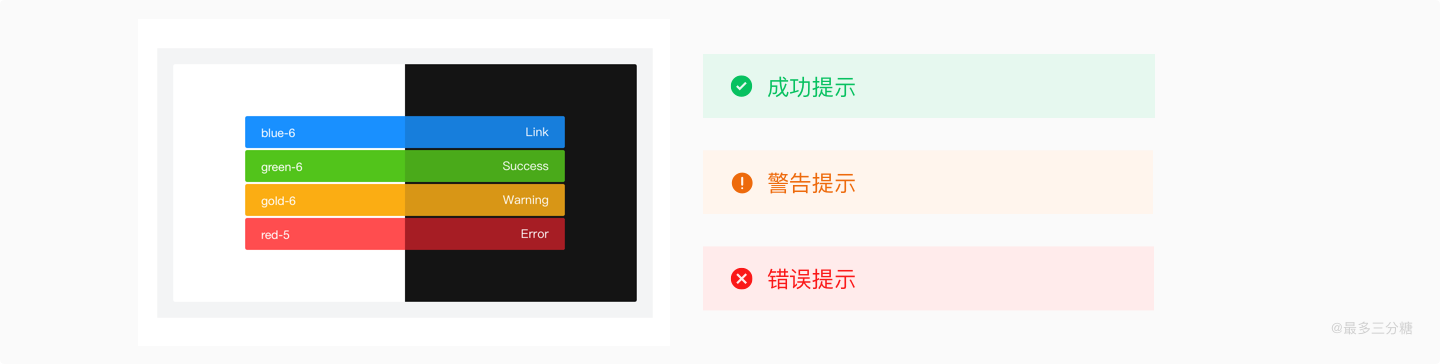 功能色代表了明确的信息以及状态,比如成功、出错、失败、提醒、链接等。功能色的选取需要遵守用户对色彩的基本认知。