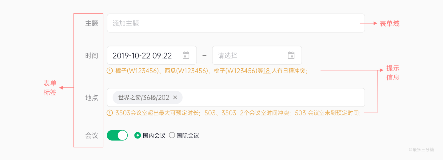 选择器还有一个拓展的样式,多选样式。这里要考虑一种情况,多选内容会在选择框里成为标签,当多选款选择到一行无法展示时,我们要考虑加高多选框,而不是用省略号代替。