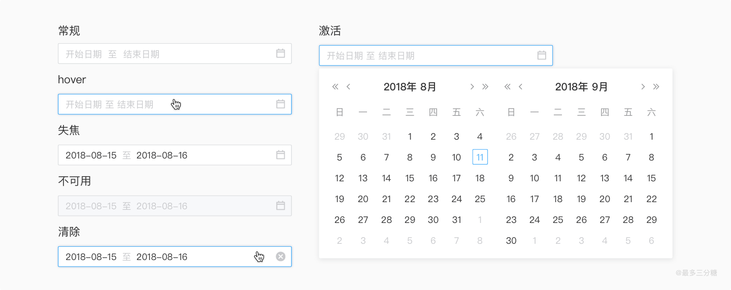 日期选择组件最好加上图标示意,根据用户习惯,可以一眼就看出这个组件的功能