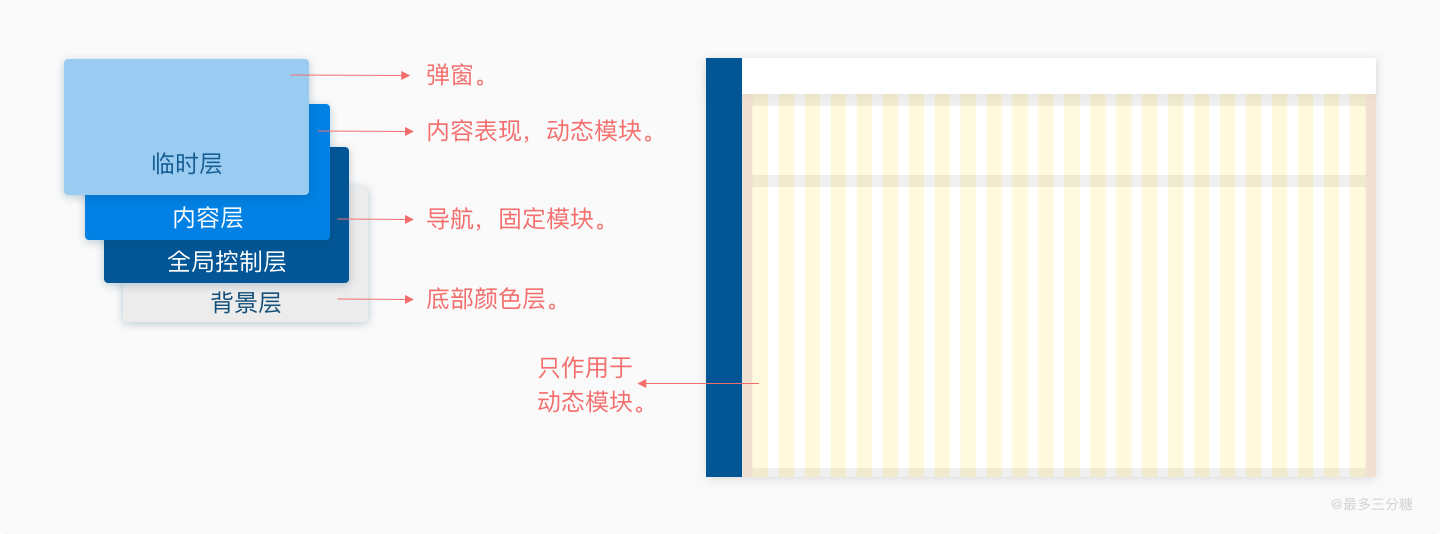栅格是配合响应式的产物,栅格规范的是内容层的模块比例而非宽度。