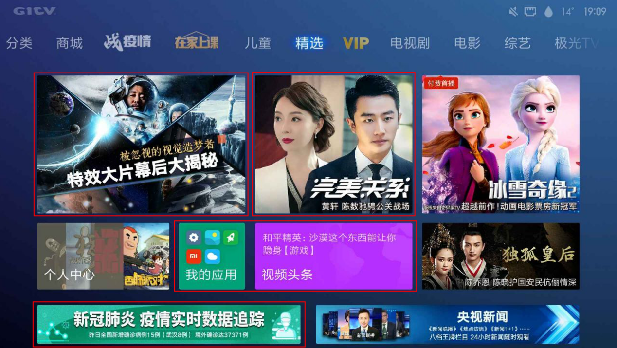 跟移动端app一样,屏幕上下左右都应留出适当的间距以保证用户舒服的一个观看使用体验,电视UI界面理论上来讲是应该留出一个10%左右的空白边。我设计的是上下52px,左右94px,但这个数据不是绝对的,可根据实际内容调整,只要视觉舒服就可以了。