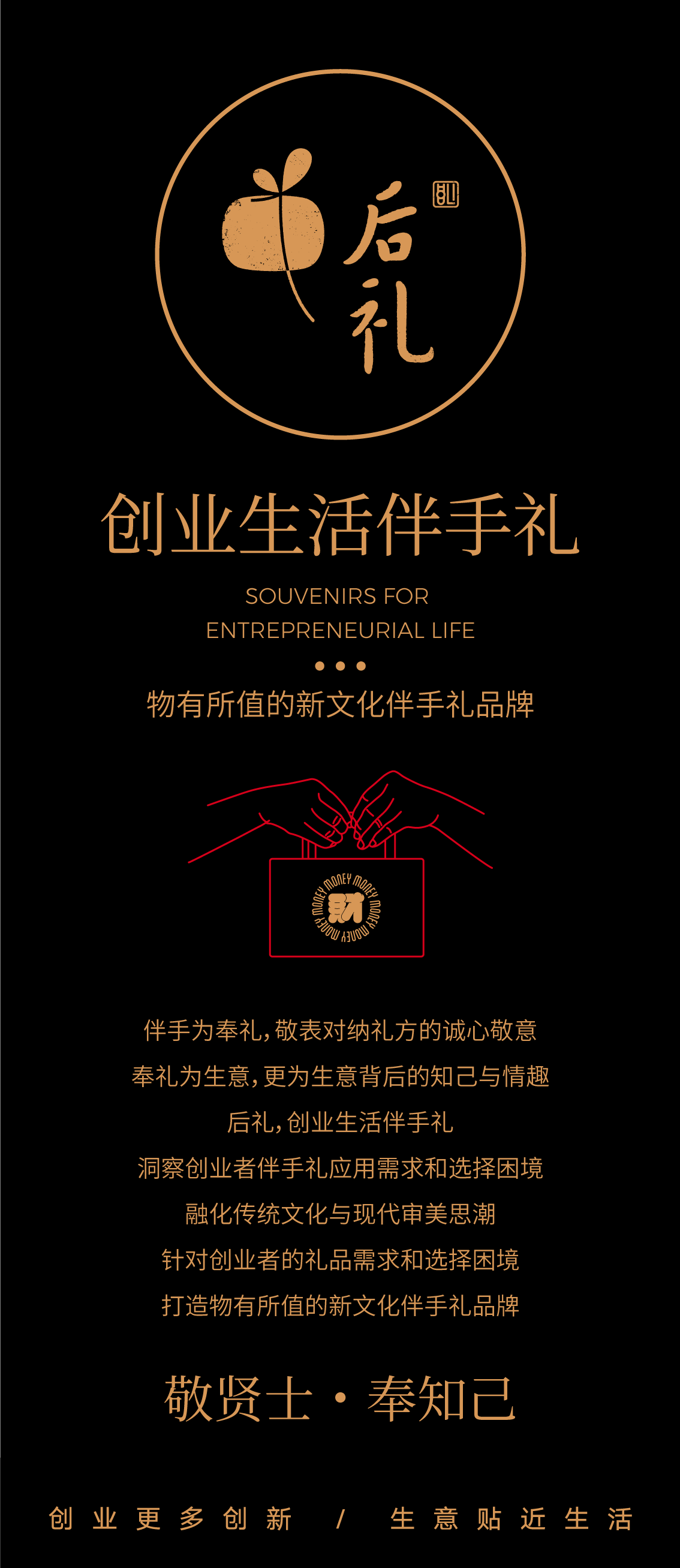 在世俗的世界里,福禄寿喜财、平安、健康、快乐等是最喜闻乐见的祝愿方向,经过后礼团队数轮创意风暴的争论后,结合创业行为的财富特质,最终选定财富的方向进行挖掘呈现。