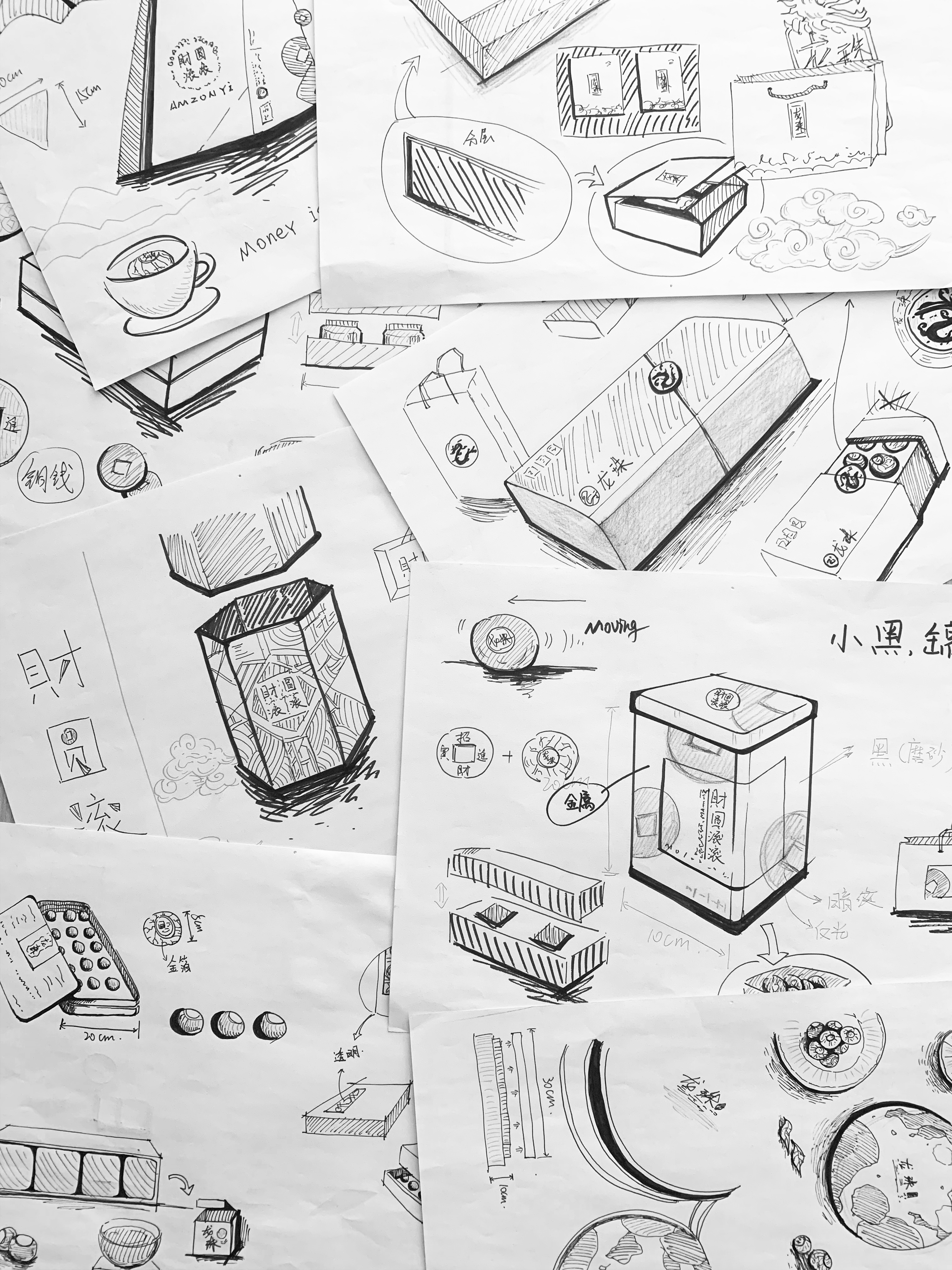 最初的时候,设计团队以茶礼的传统包装样式为基础进行设计展开,并完成了多种样式的形态绘制,但在后期的讨论过程中,依然觉得缺少新意而无法与传统茶礼样式区隔开,做为创业者的伴手礼,在传统里创新、在创新里突破是后礼品牌唯一的出路法则。