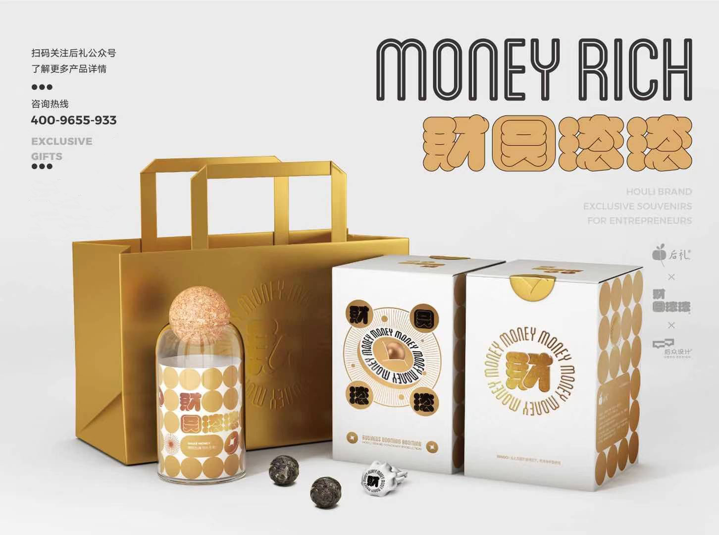 财圆滚滚是后礼品牌的首款产品,以洞察创业者伴手礼应用需求和选择困境为基点,融合传统文化与现代审美思潮,为创业者提供物有所值的新文化伴手礼产品,用产品致敬时代和时代中的创业者。