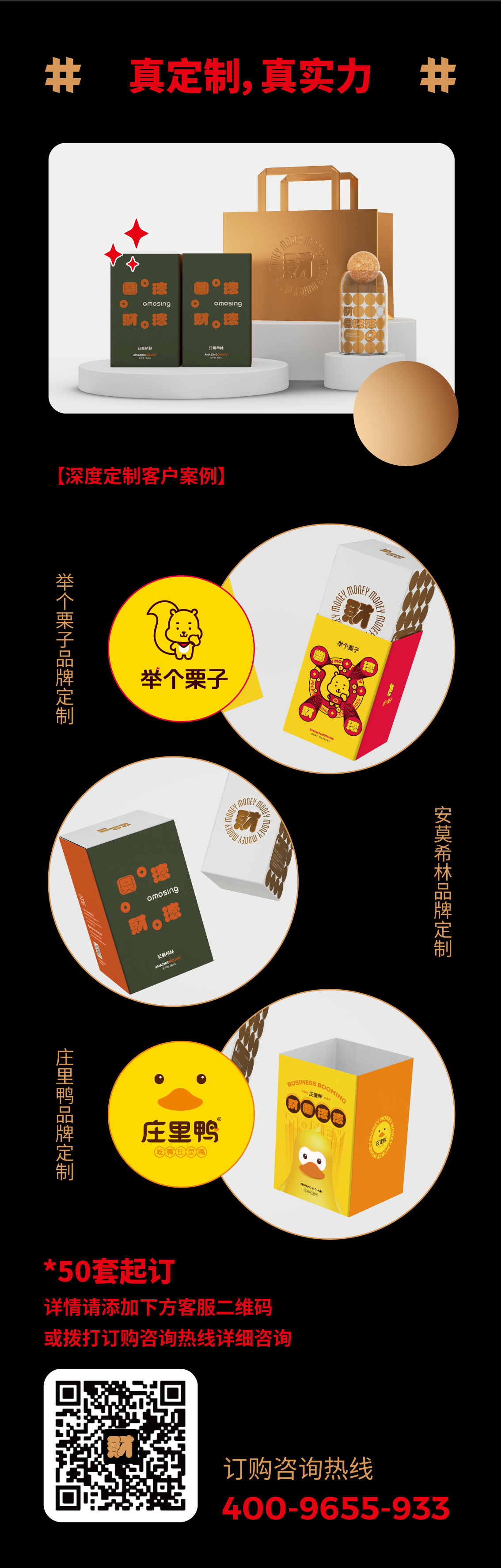为了能够充分呈现财圆滚滚的企业文化礼品定制价值,设计团队将财气横溢的超大腰封进行个性化定制,可选用企业形象相关的个性化元素进行全新设计制作;产品包装亦可根据根企业调性进行创新性调整;甚至,如果有必要,财圆滚滚产品亦可根据企业的行业属性和文化特点进行专属化调整重制。