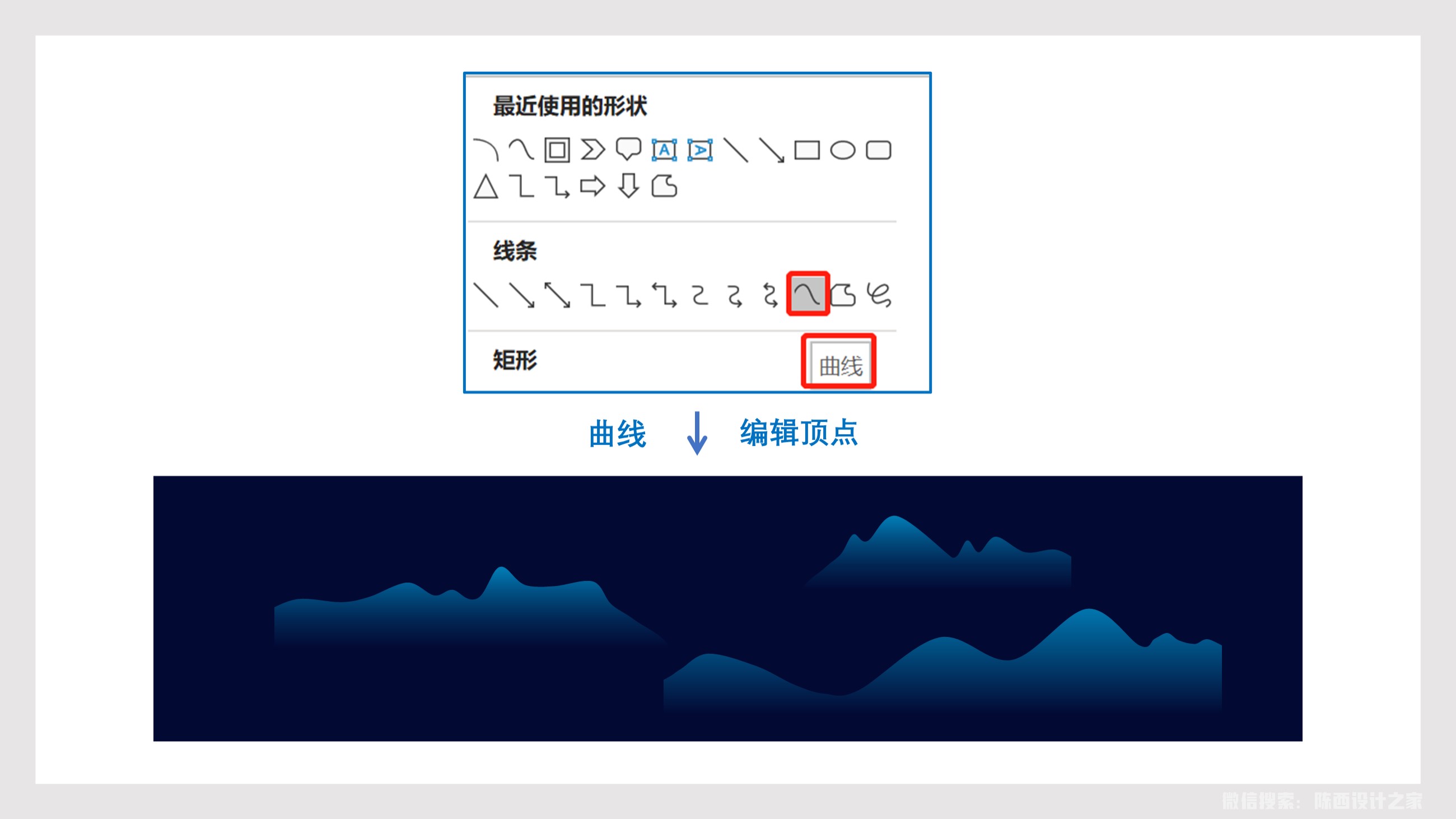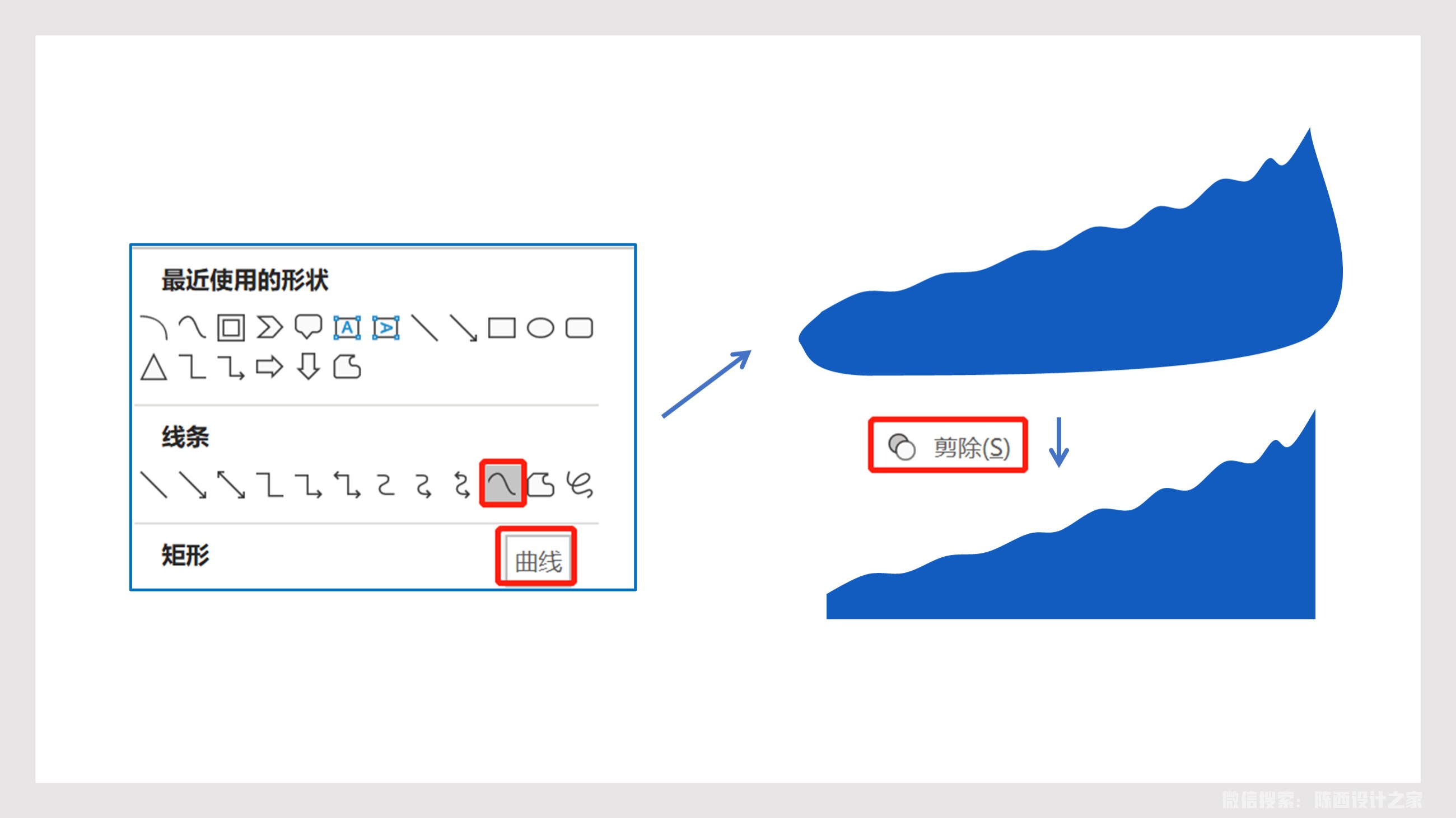 这里的波浪形状在PPT里面就可以直接绘制。如下:
