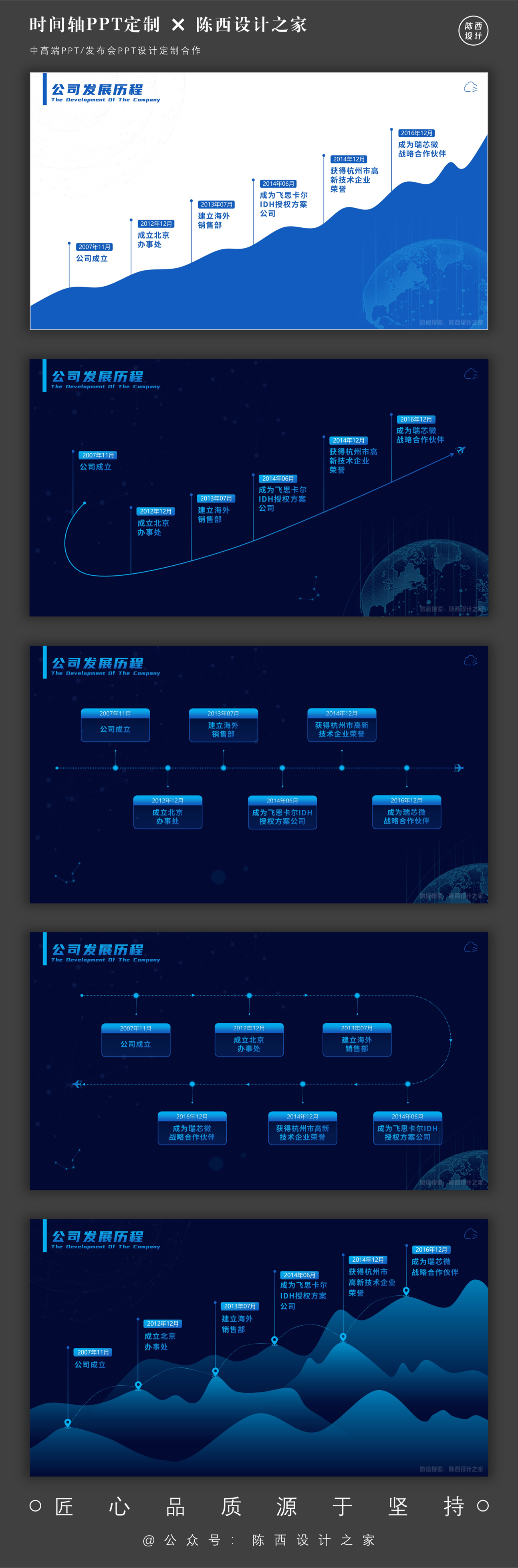 今天是实战PPT定制解析,主要重点是关于公司宣传介绍PPT中的时间轴类设计。