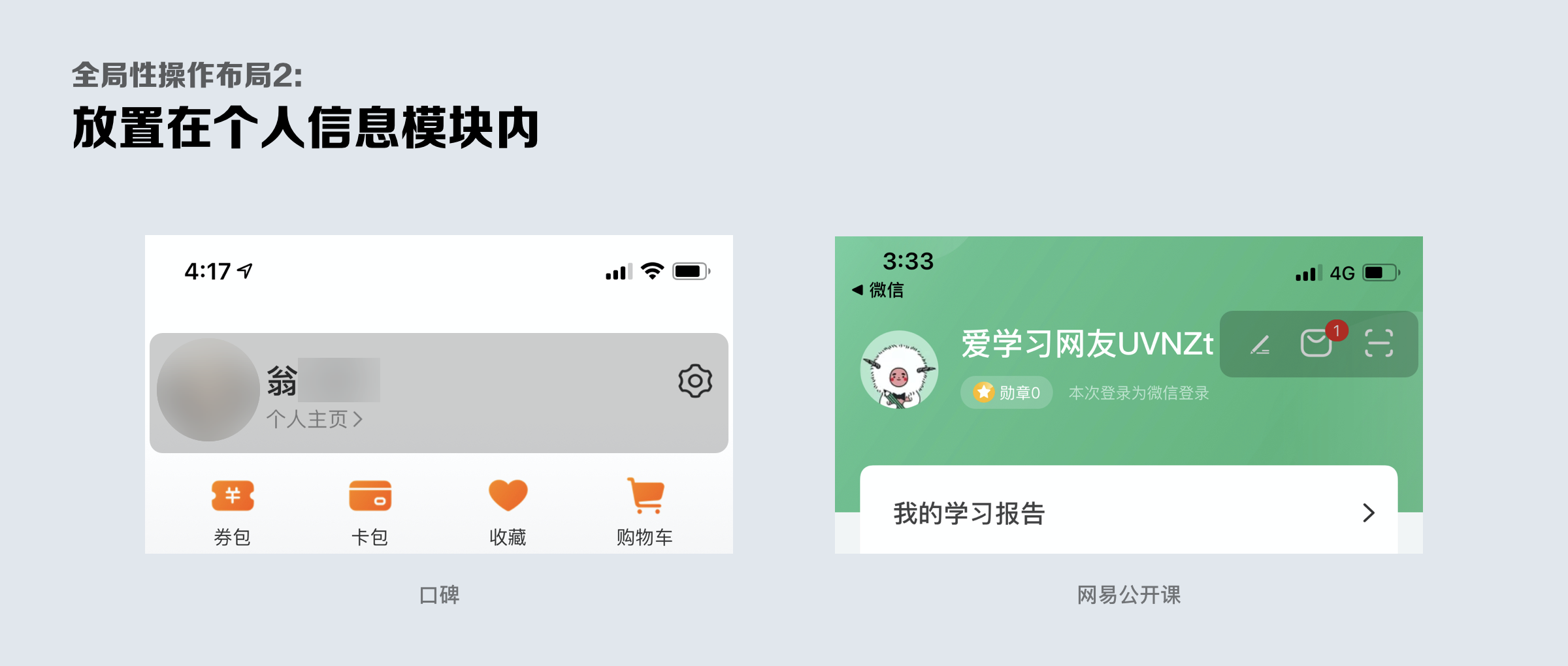 全局性操作一般指的是如设置、信息、扫一扫等产品层面的内容,不仅限于当前页面。