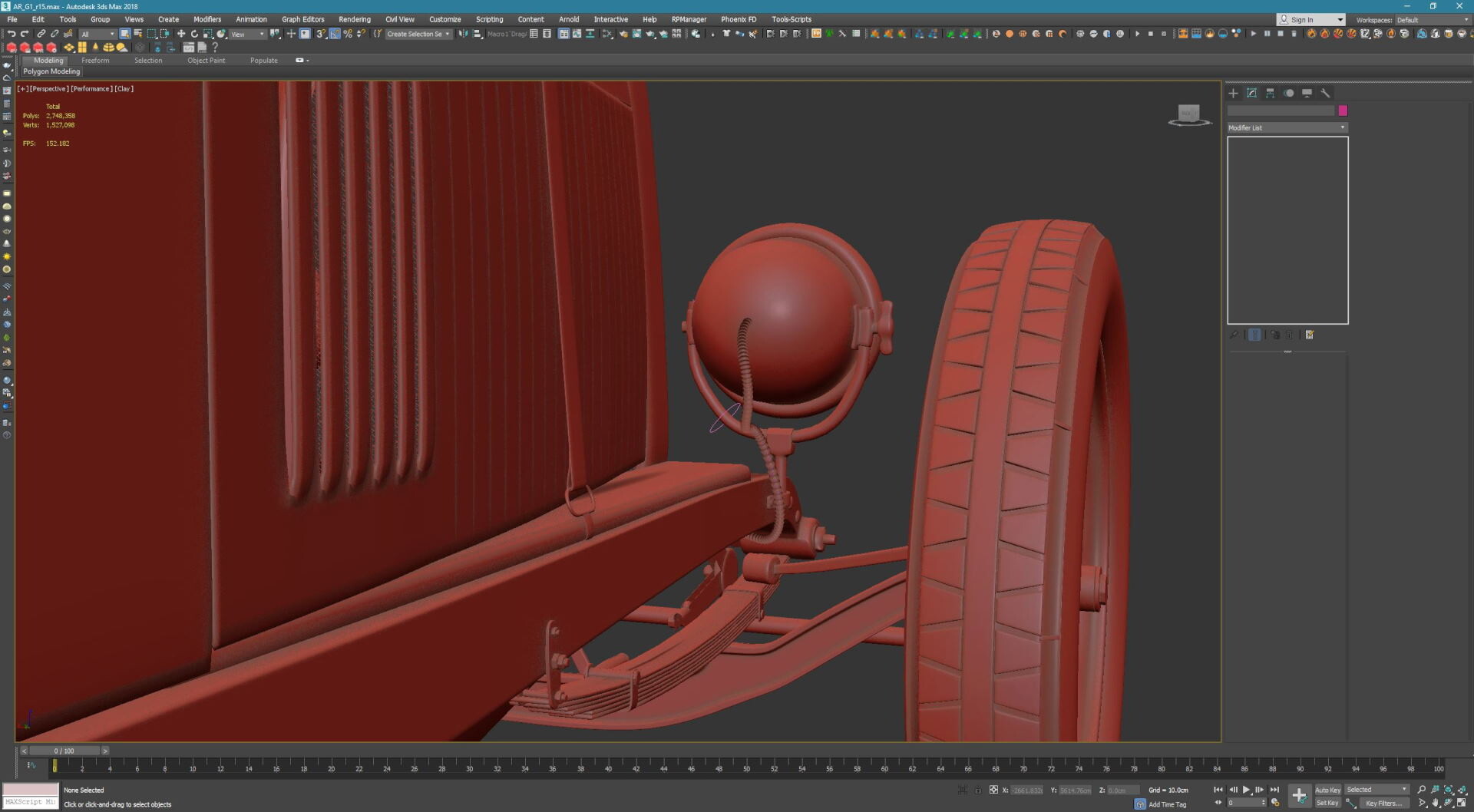 正如我前面说过的,整个场景是用3ds Max制作的,用Redshift渲染。 空气中的灰尘是用Pflow做的,整个场景的灯光用HDRI贴图(HDRI dome map)控制,并且还多用了一个灯光以强调汽车的体积光。