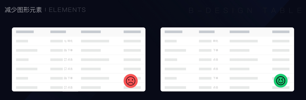 尽量减少视觉符号的使用,因为视觉符号可能会使你的用户界面复杂,产生难以理解的内容;去除不必要的视觉干扰,例如不必要的图标、无规律的色彩等。