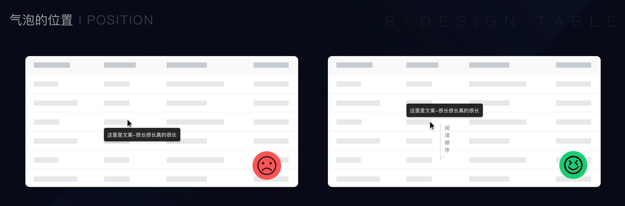 位置:建议展示在上方,因为我们的阅读顺序是从上到下,鼠标向下移动时不会被上面的气泡遮挡住。