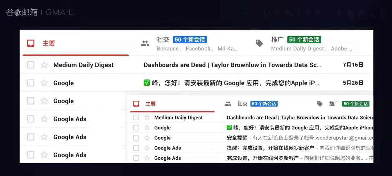 Gmail就是这样设计的,如下图所示: