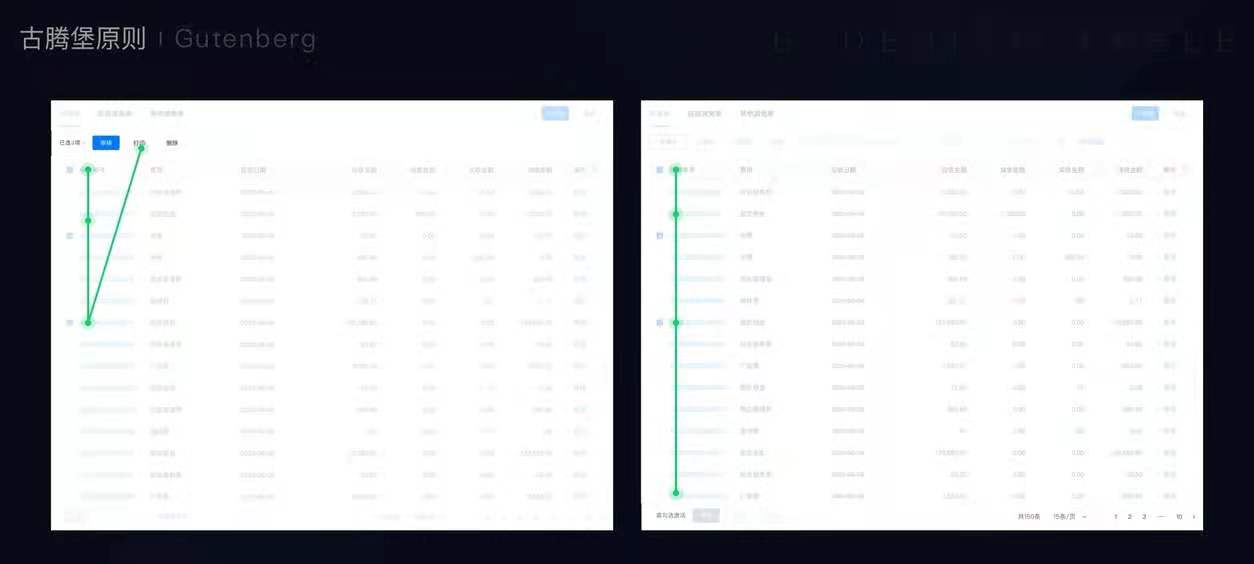下面我将以公司财务中台的表格改版为例,逐步说明表格中每个结构的设计。改版前后样式对比图