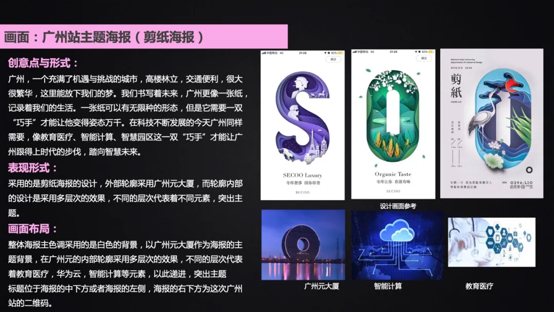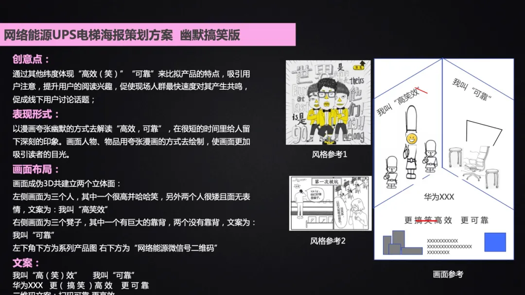 主要针对业界以及华为前两年的海报(讲产品与解决方案)进行了在海报中体现创意点的分析,并总结出创意表达的方法,即: