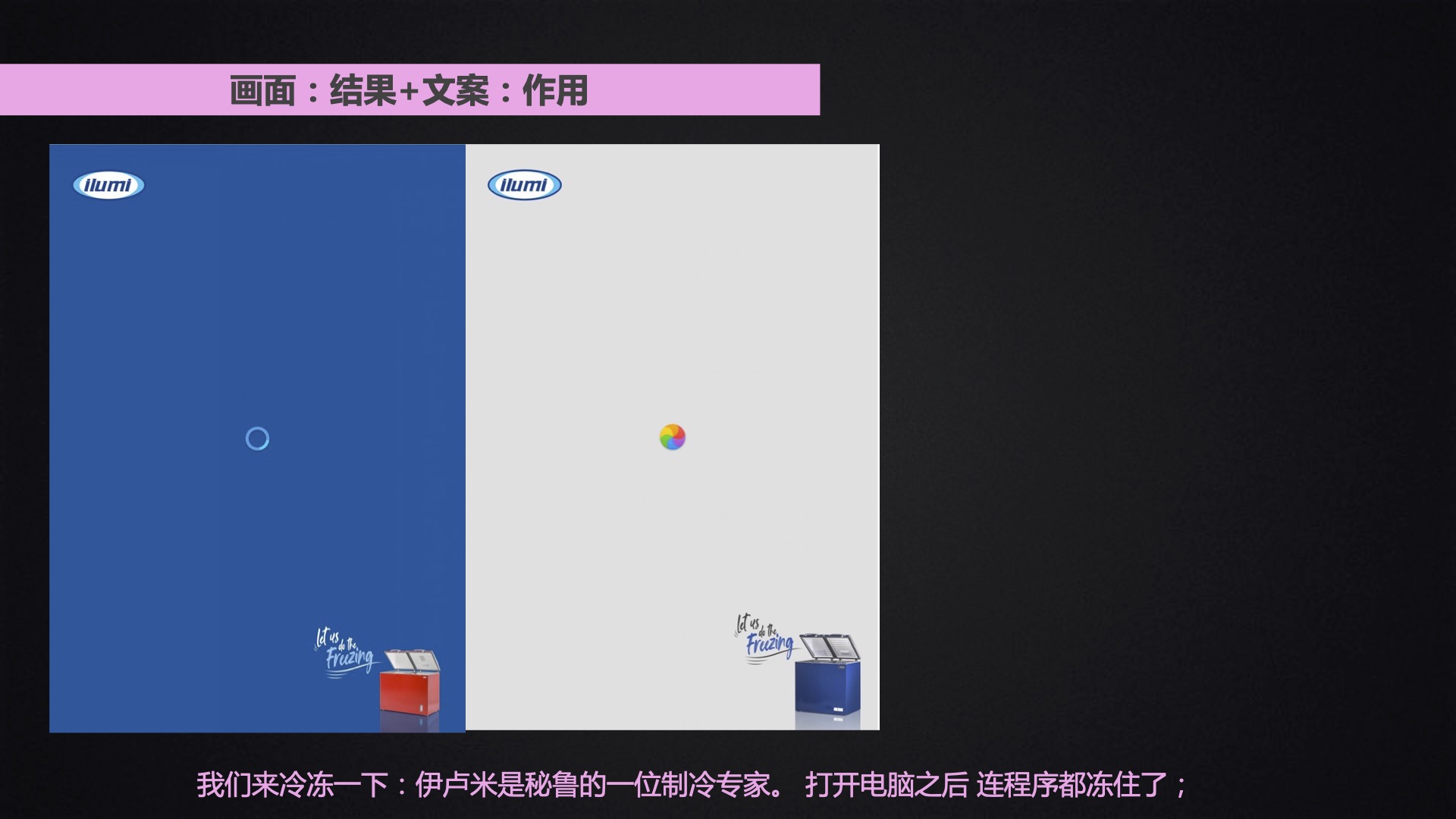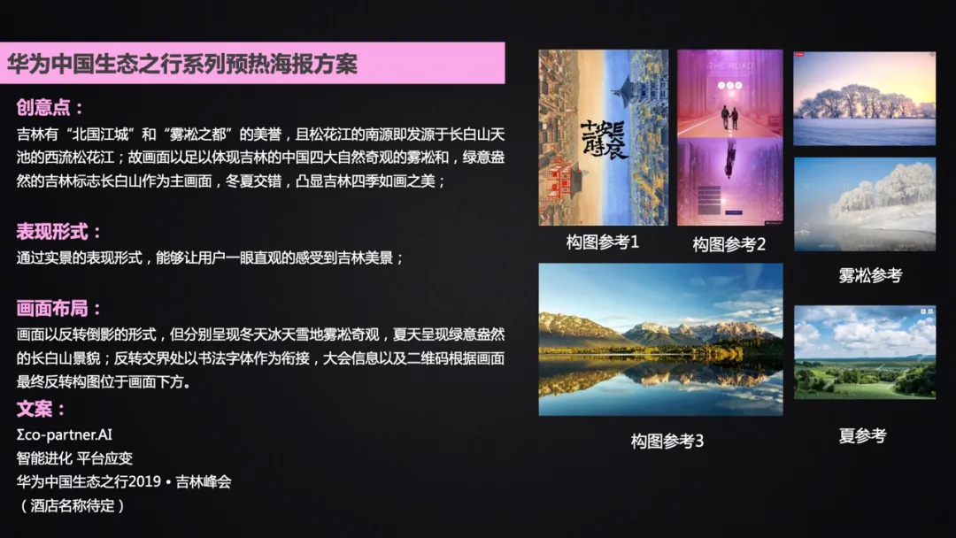 “第二个版本是我们参考了长安12时辰的构图方式,左边用的是松花江景,右边用的是雾淞奇观;留下中间开地方呈现画面主文案;