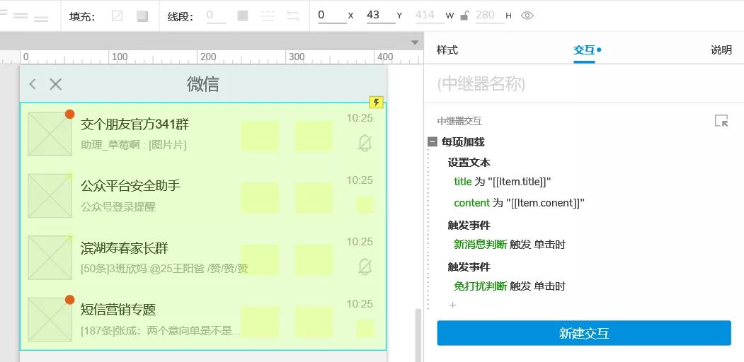 4)在中继器的每项加载事件里,分别触发新加的元件上的事件。